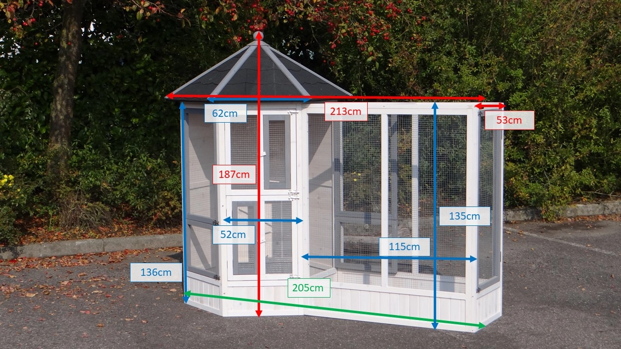 | Internal cross-section | Main aviary: 99cm |