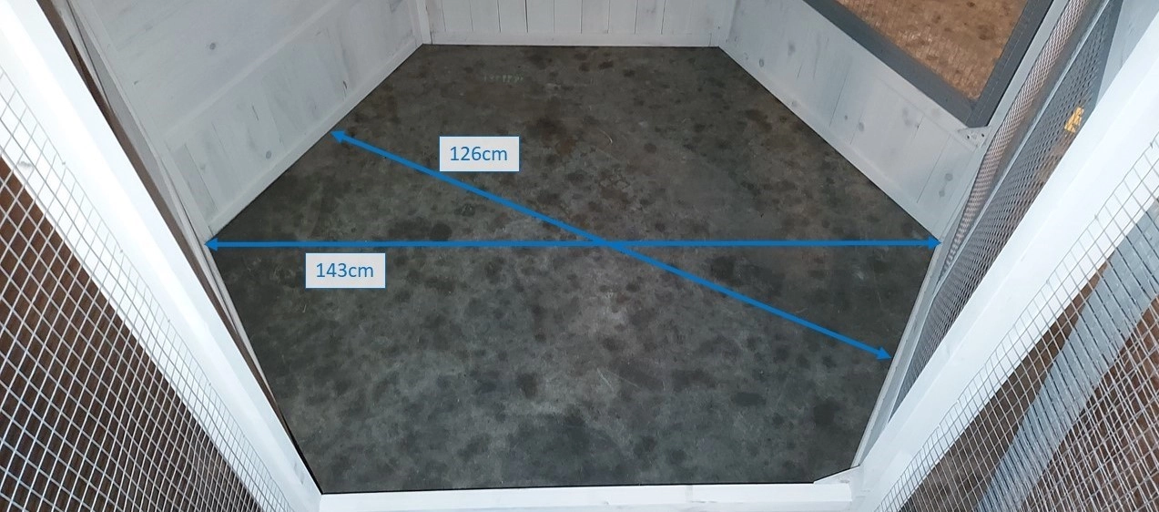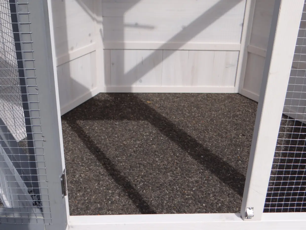 - The roof of the additional run is equipped with mesh (ca. 12x12mm)