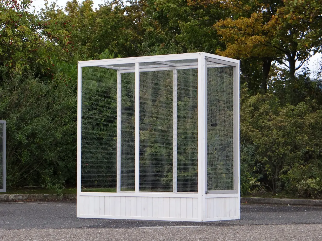 - This aviary is equipped with spacious doors for optimal accessibility