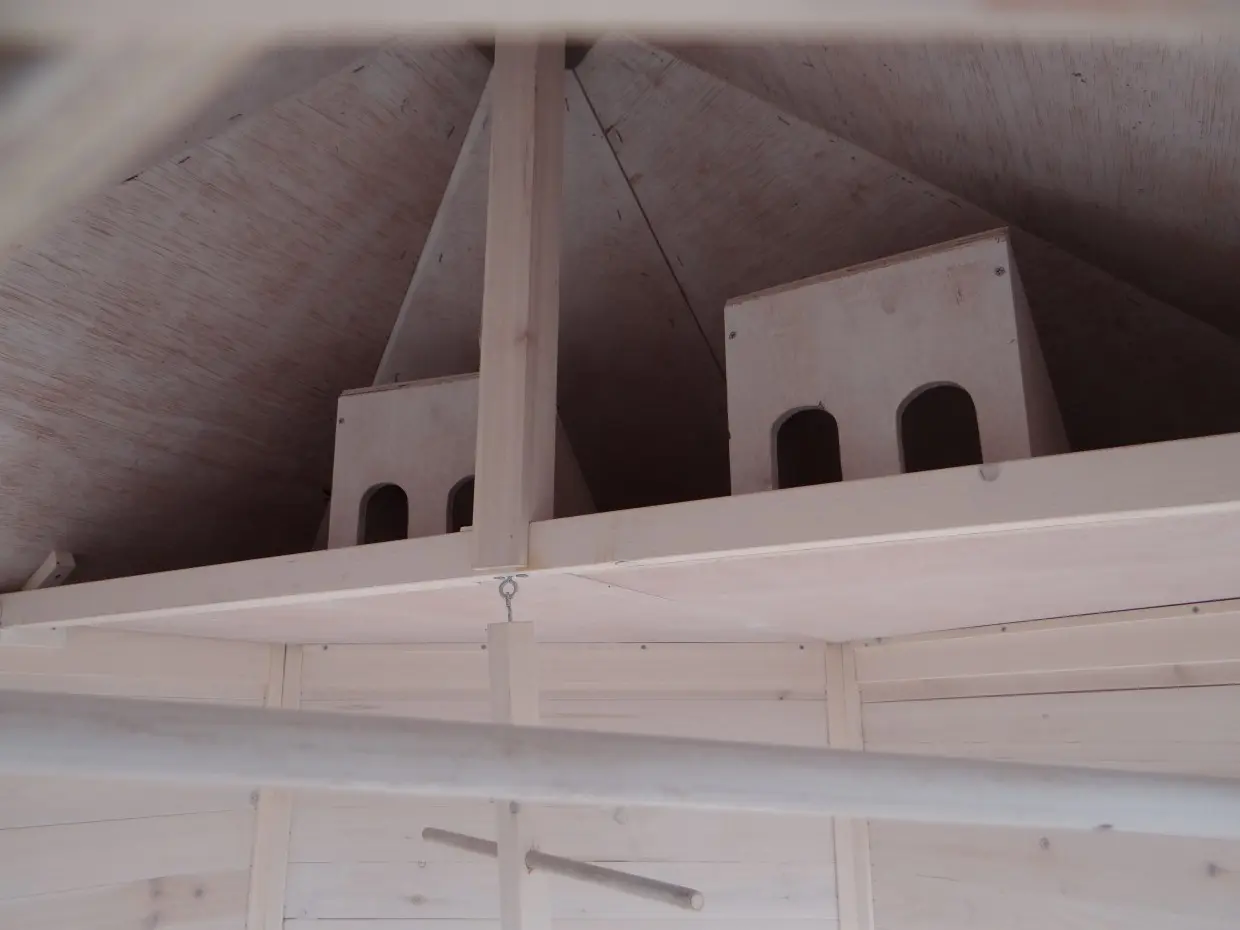 - This aviary is equipped with a rotating feeding system. Therefore the birds can be easily fed