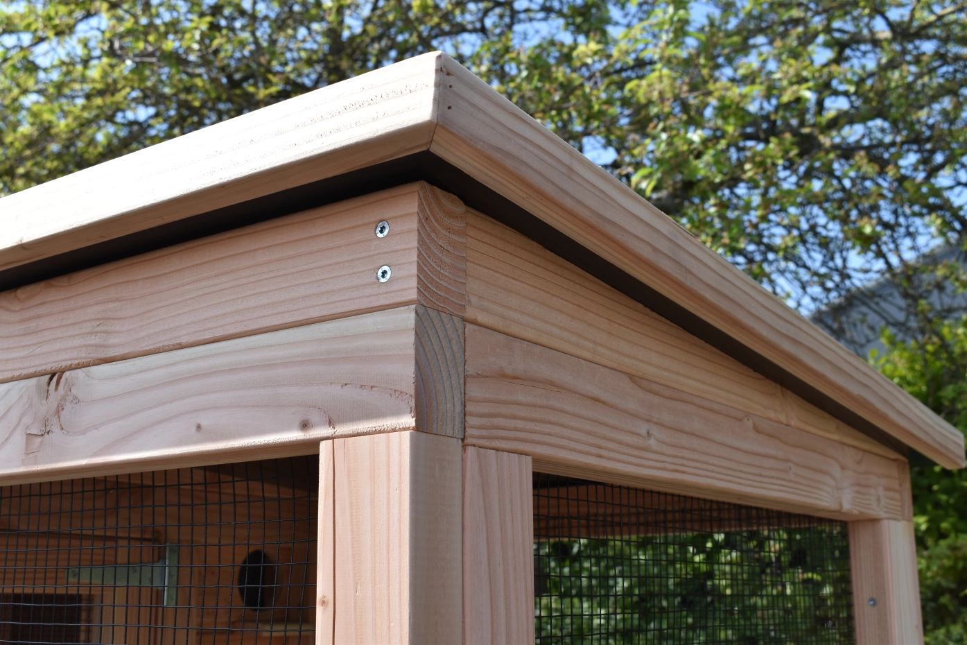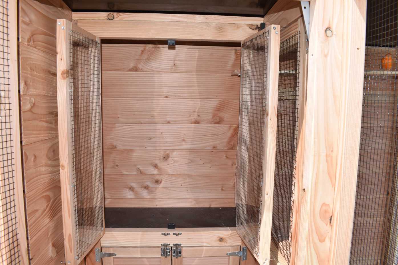 - The hutch is made of panels of 180x85cm or 180x120cm. This can be screwed together. Drill bit, screws and bits are included.