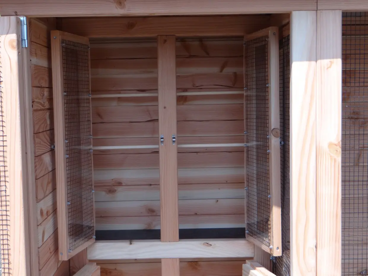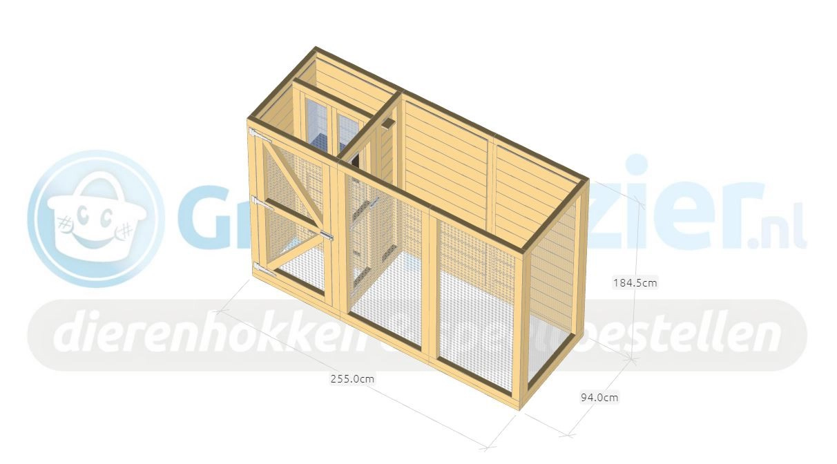 - The hutch is made of panels of 180x85cm or 180x120cm. This can be screwed together. Drill bit, screws and bits are included.