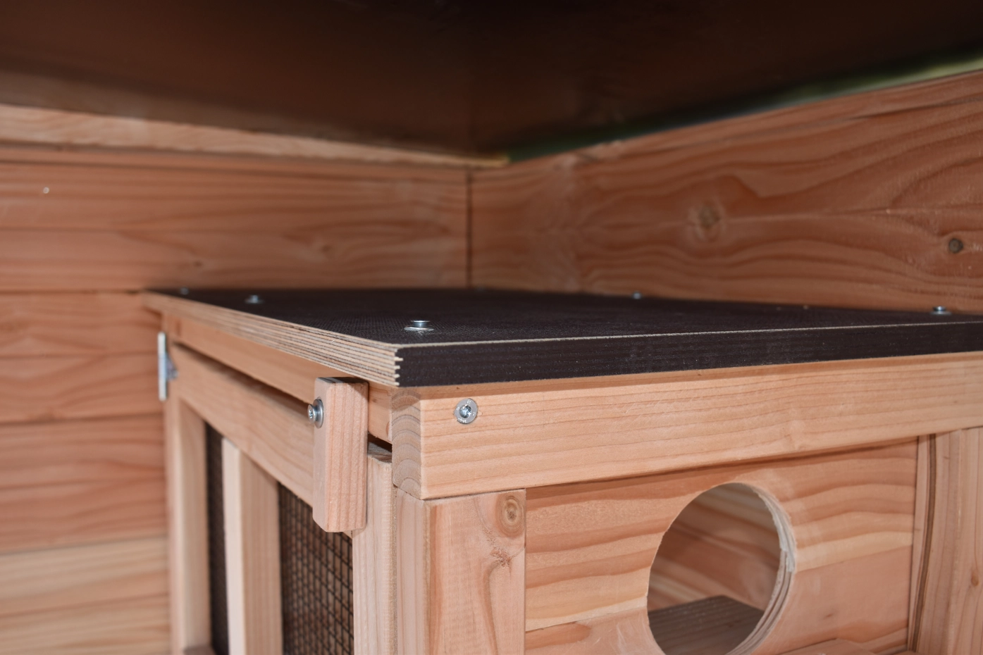 - The hutch is made of panels of 180x85cm or 180x120cm. This can be screwed together. Drill bit, screws and bits are included.