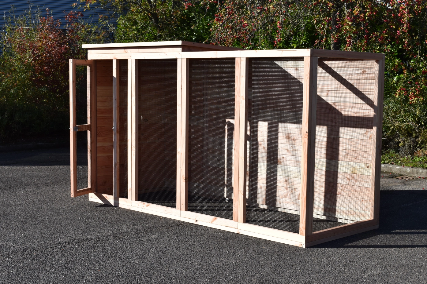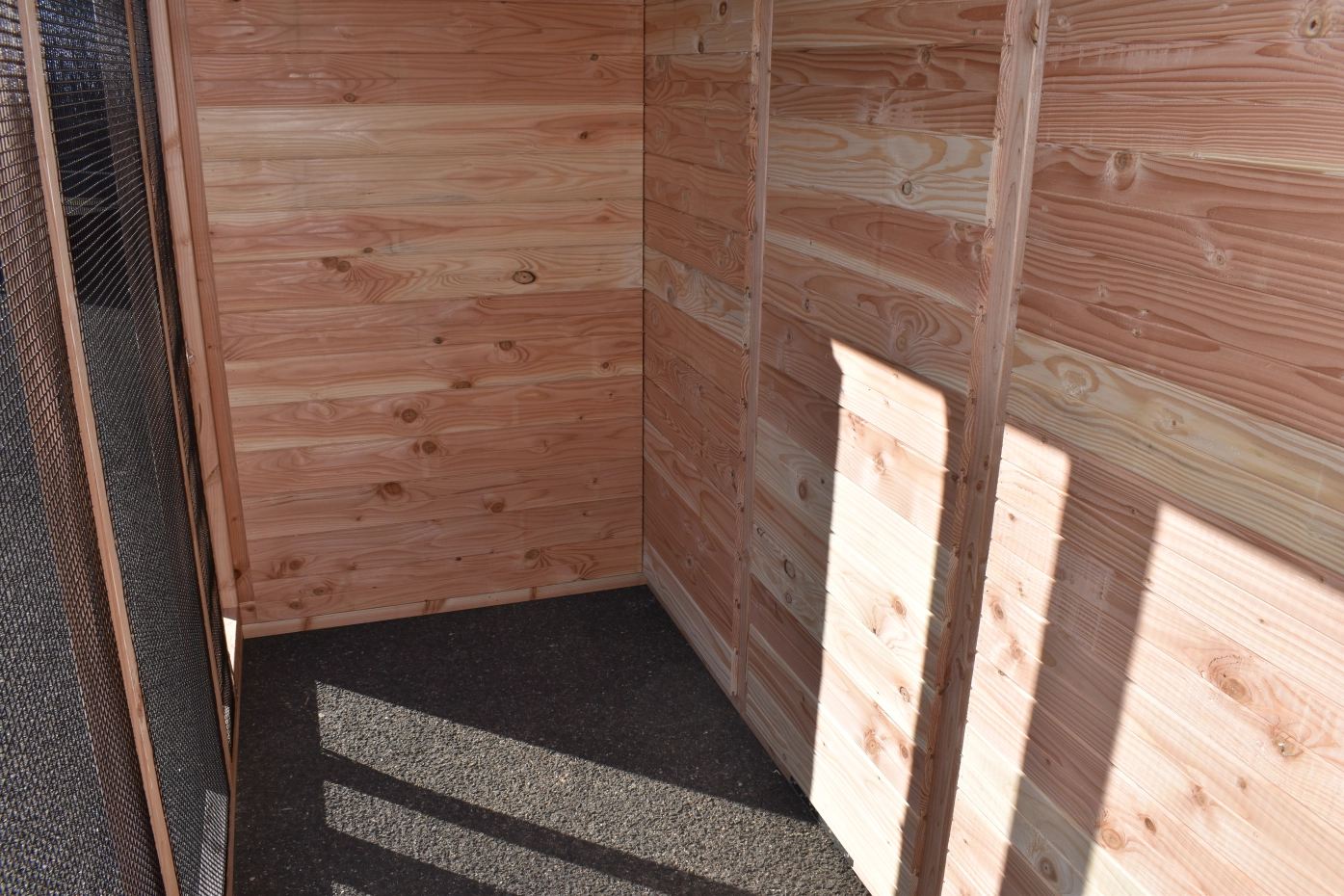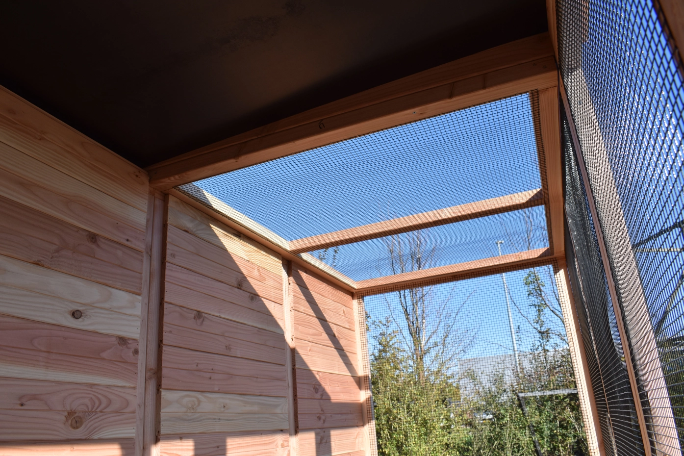 Aviary Flex 4.1+ is a large aviary. The aviary is adaptable after your own wishes. Because of the use of the Douglaswood, it do not need any further treatment. To preserve the color of the wood you can treat it with Douglas oil. Without further treatment, the wood will quickly turn grey.