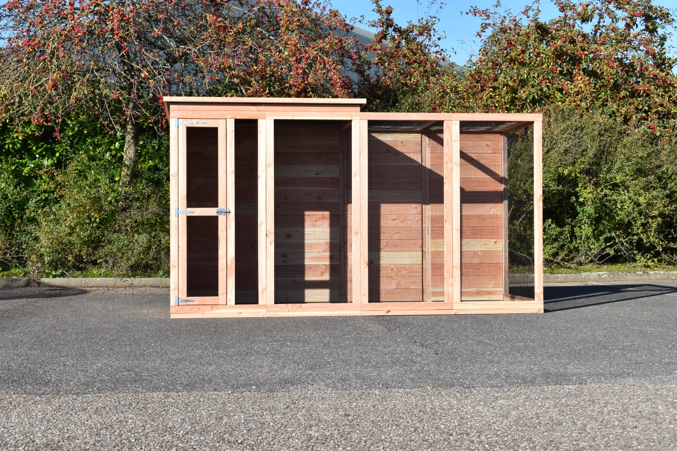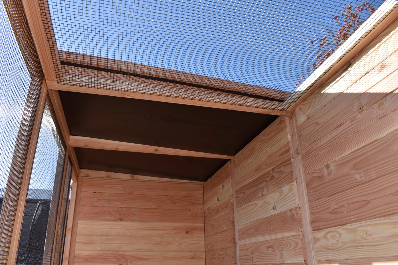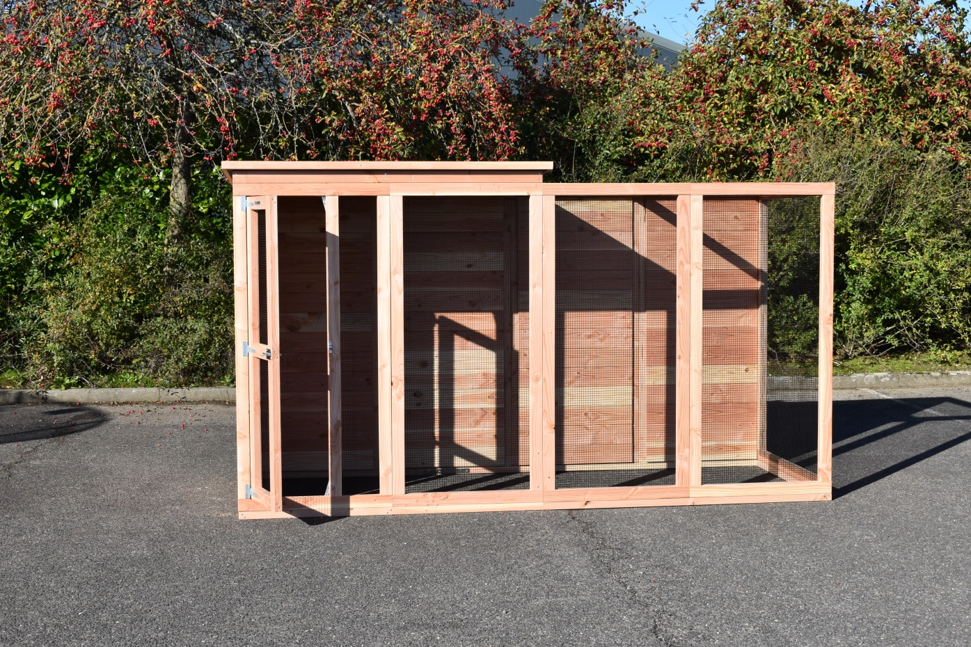 Aviary Flex 4.1+ is a large aviary. The aviary is adaptable after your own wishes. Because of the use of the Douglaswood, it do not need any further treatment. To preserve the color of the wood you can treat it with Douglas oil. Without further treatment, the wood will quickly turn grey.