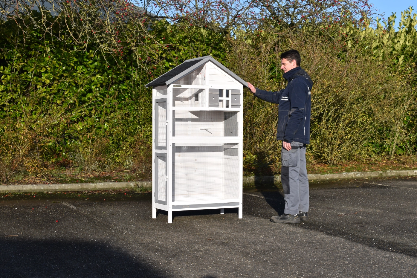 - This aviary is equipped with spacious doors for optimal accessibility