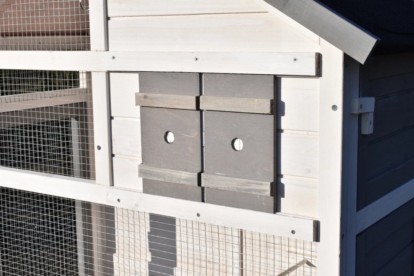It is advisable to treat the hinges and locks periodically with silicone spray or lock spray to prevent rust and corrosion. If the pet house is not in a covered place, we advise you to anchor the house.