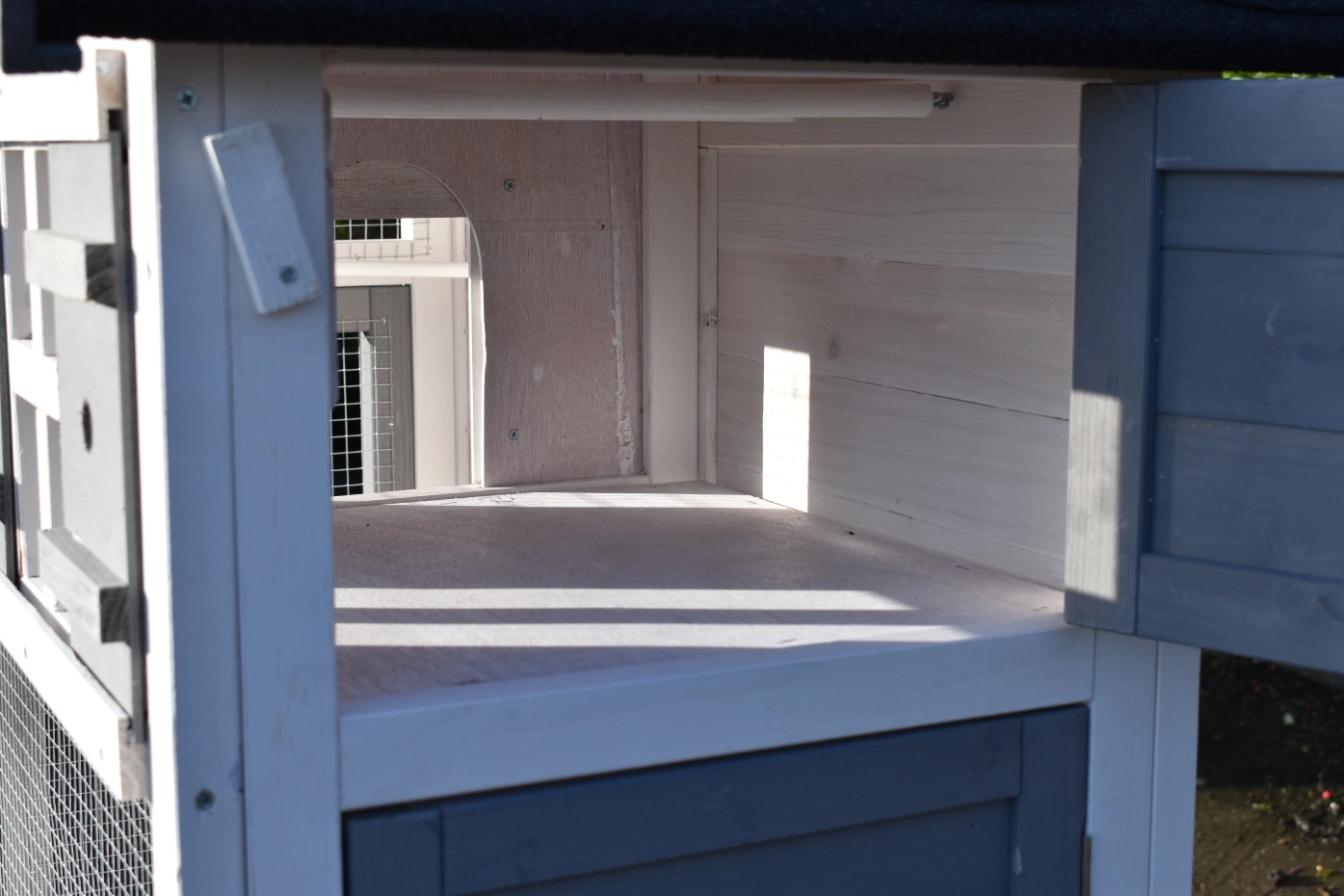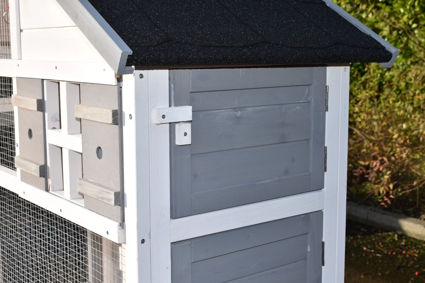 - The roof of this splendid cage is neatly finished with felt roofing with slate