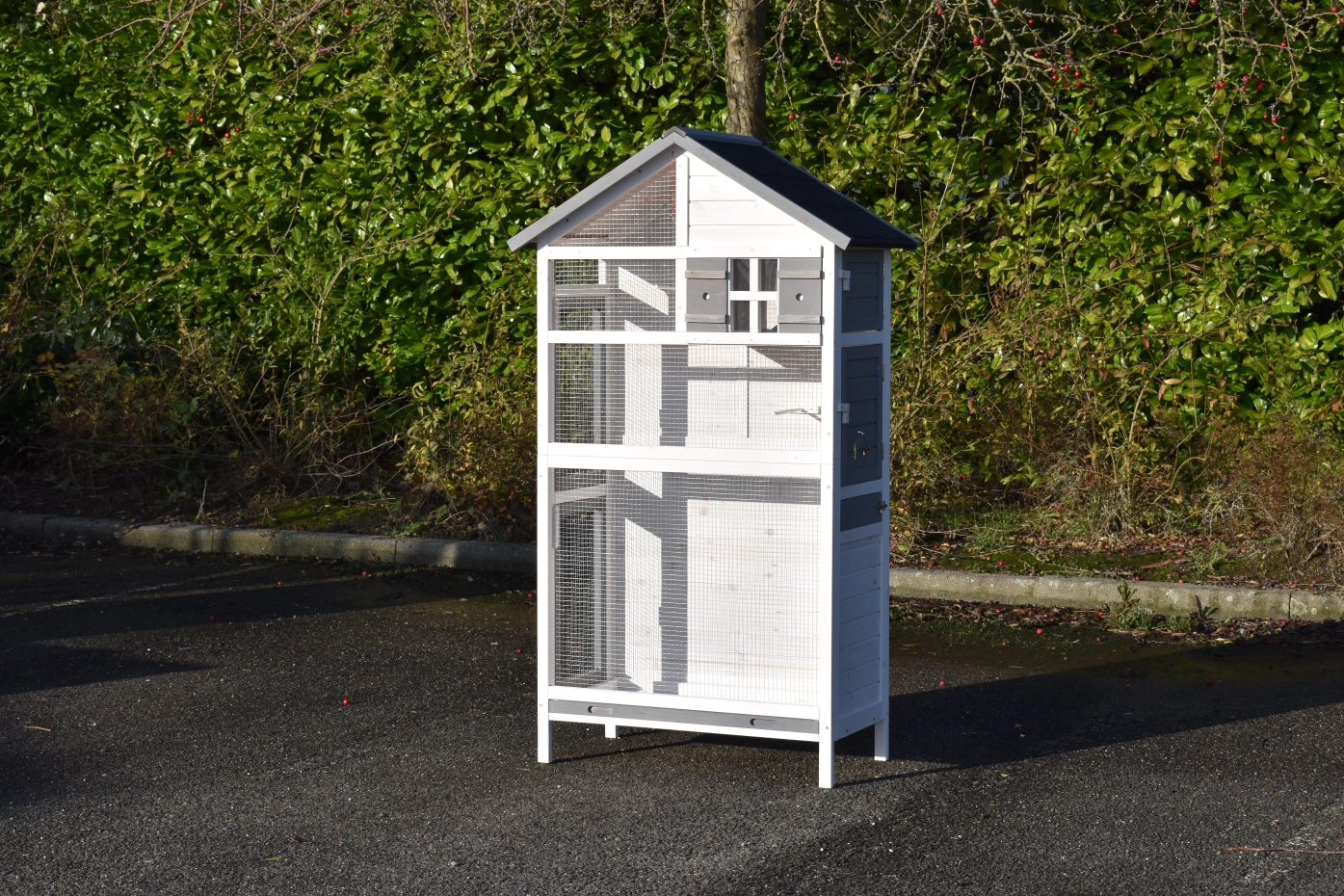 - This aviary is made of beautiful pine wood