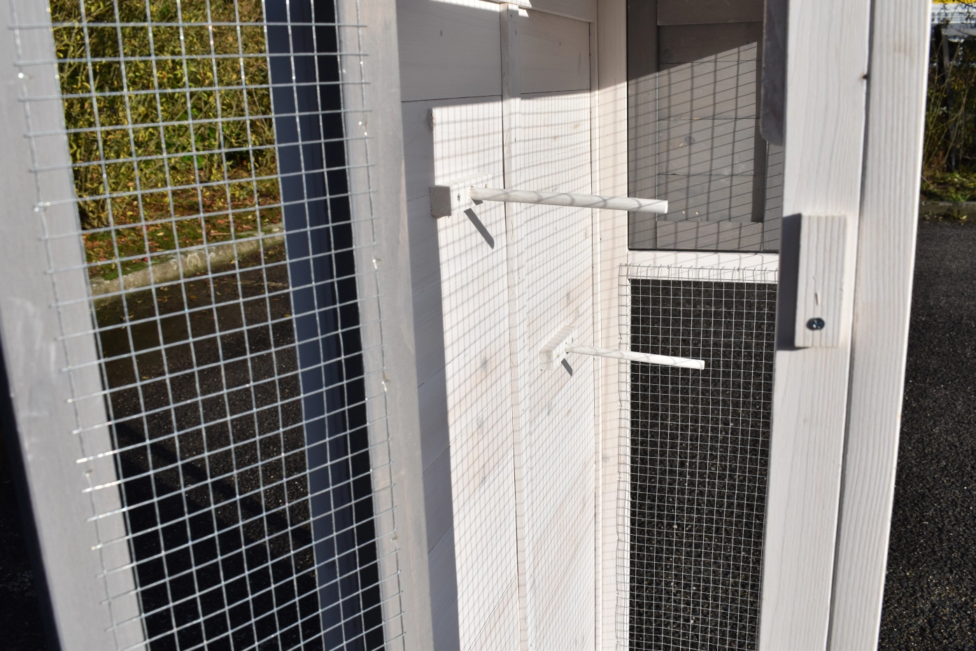 It is advisable to treat the hinges and locks periodically with silicone spray or lock spray to prevent rust and corrosion. If the pet house is not in a covered place, we advise you to anchor the house.