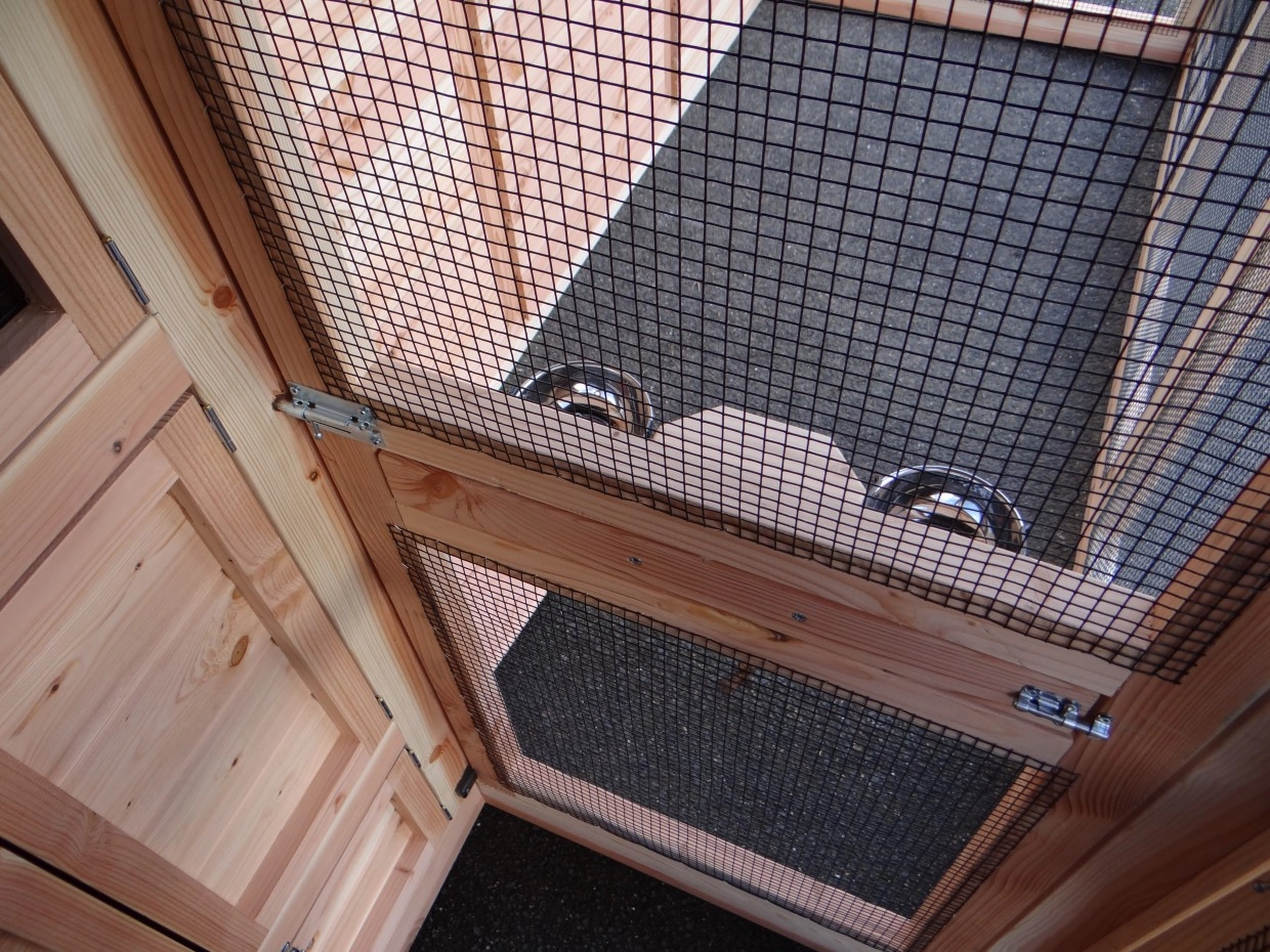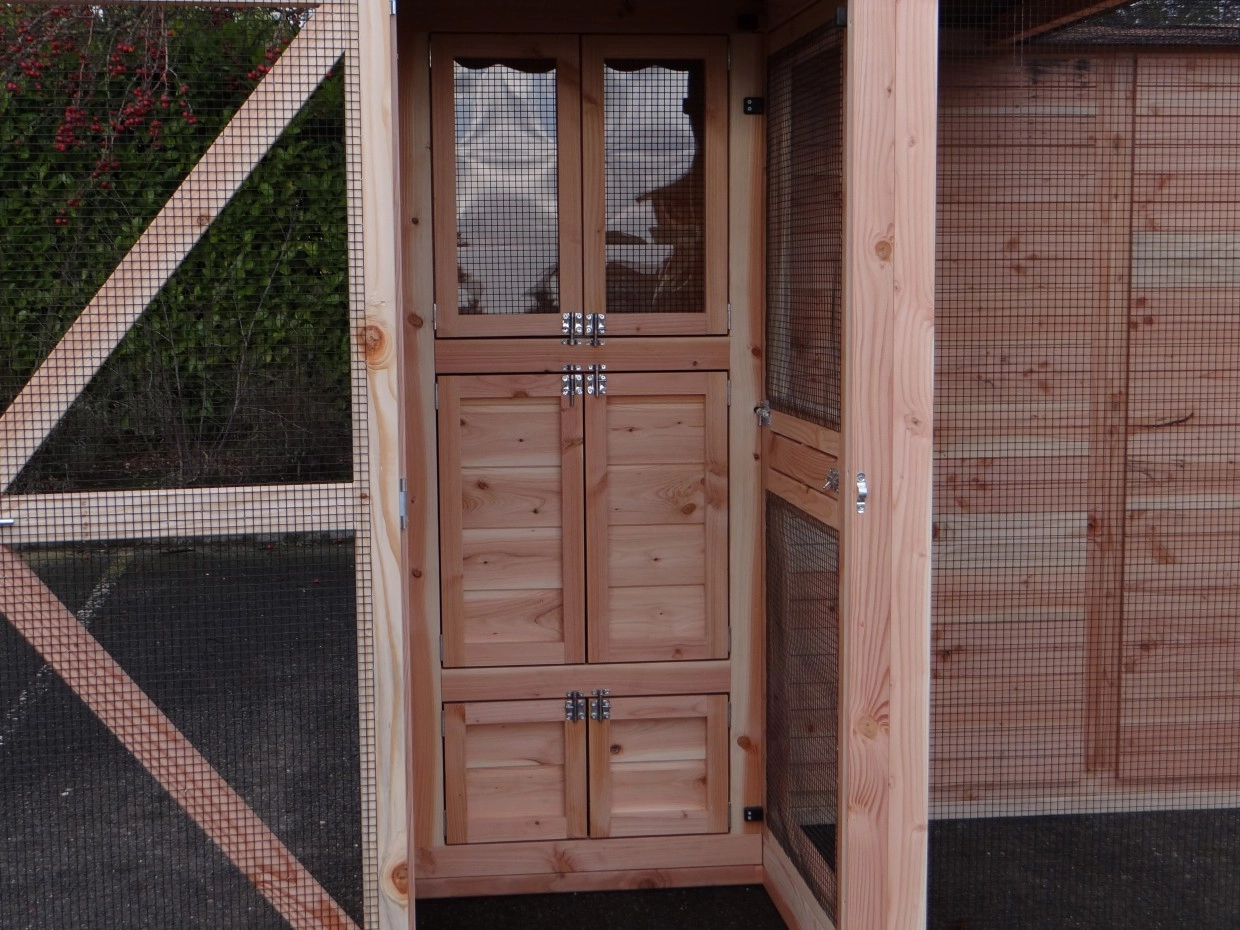 • The sleeping compartment of the aviary is lockable