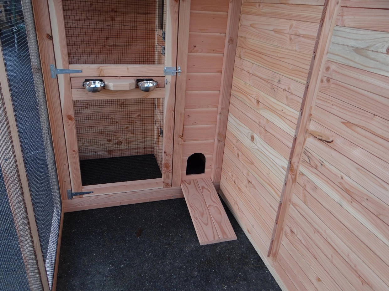 Aviary Flex 4.1 has a lock of approx. 80x75cm, so you can easily get to the birds without them escaping. The lockable night shelter and storage area can also be accessed via the airlock. The door to the run has a rotating feeding system. The doors in the aviary's airlock can be closed from two sides.
