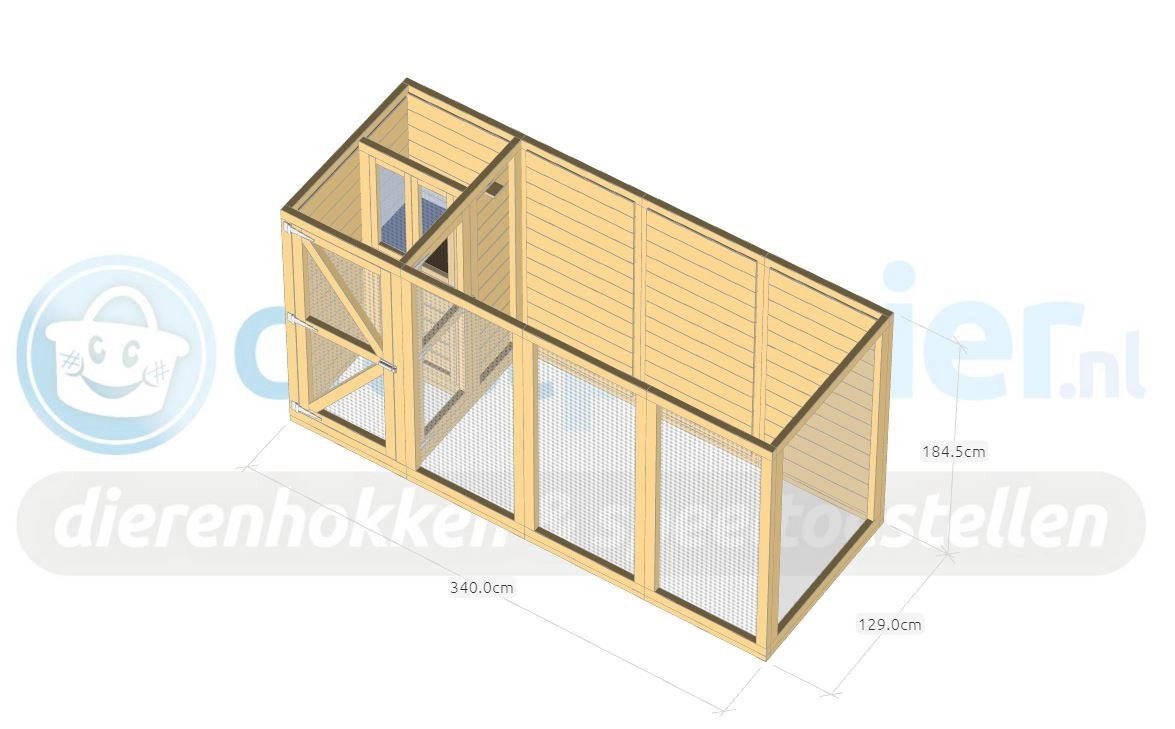 • The hutch is made of panels of 180x85cm or 180x120cm. This can be screwed together. Drill bit, screws and bits are included.