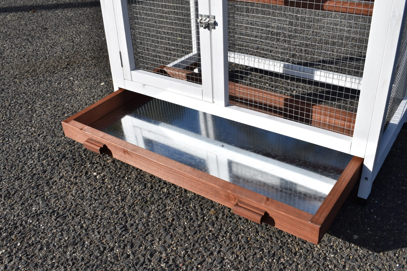 - This aviary is equipped with a handy drawer for easy cleaning
