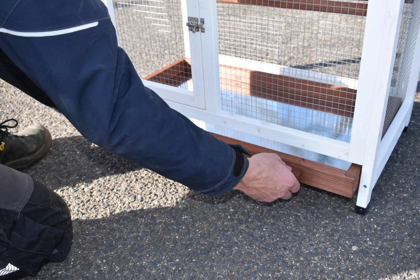 It is advisable to treat the hinges and locks periodically with silicone spray or lock spray to prevent rust and corrosion. If the pet house is not in a covered place, we advise you to anchor the house.