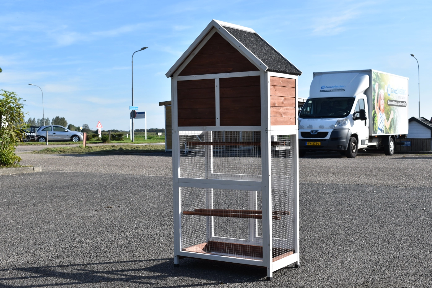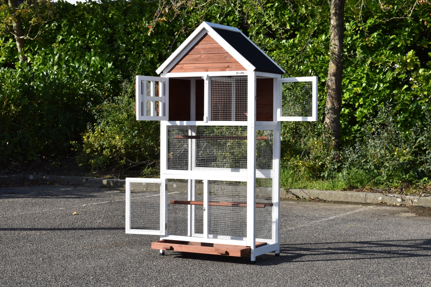- This aviary is made of beautiful pine wood