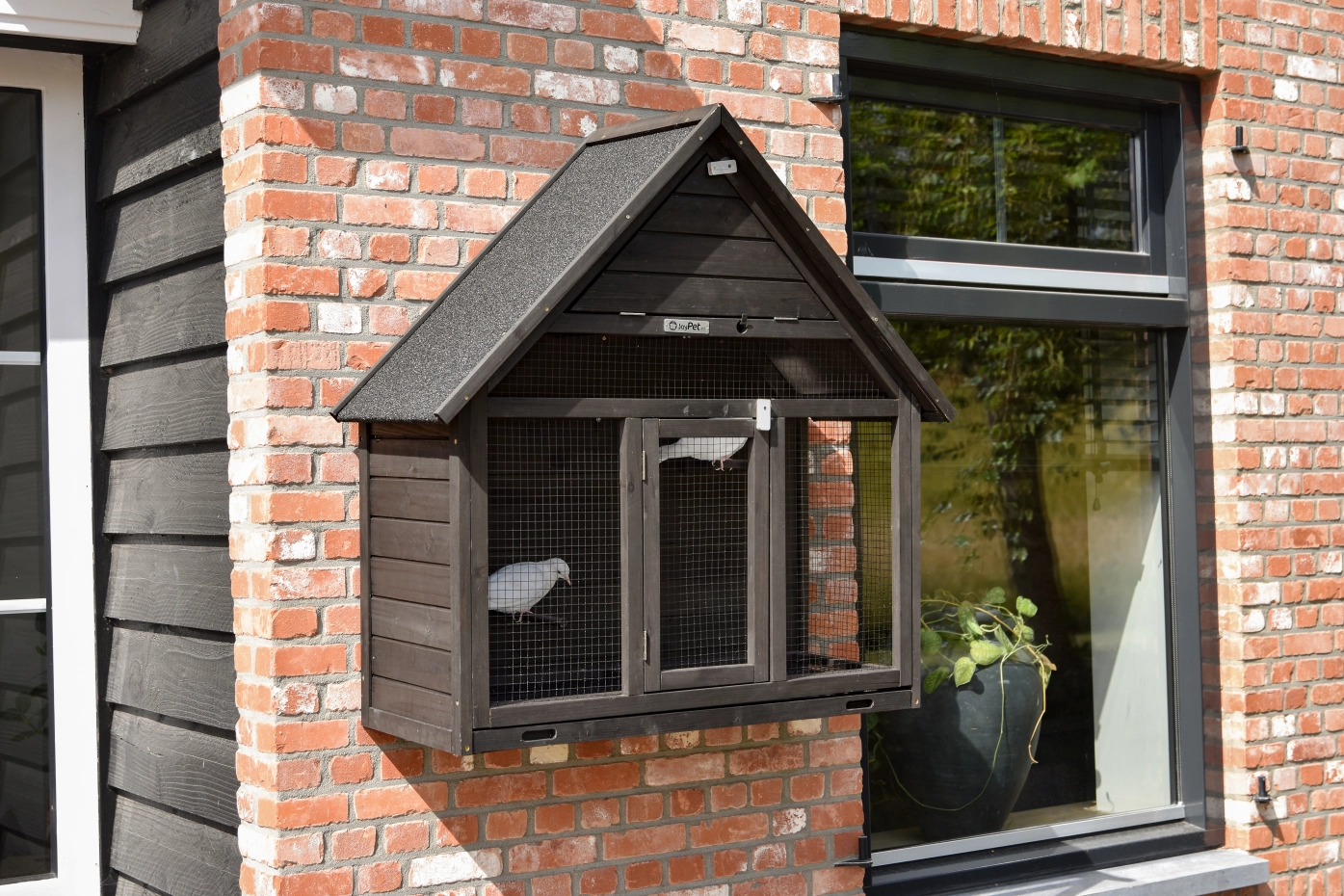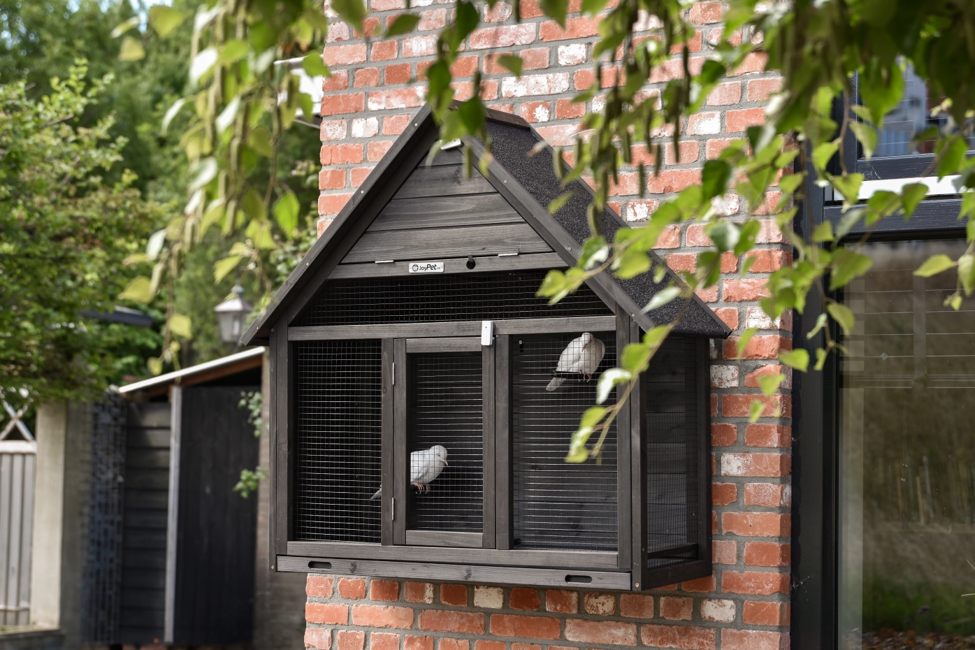 Wall Aviary Matty Large is ideal for 4 small birds or 2 slightly larger ones. It features a convenient sliding tray with a mesh panel above – keeping your birds safe during cleaning. The sleeping area can be closed off, 3 perches are included, and with the supplied hooks, you can easily hang the aviary on the wall.