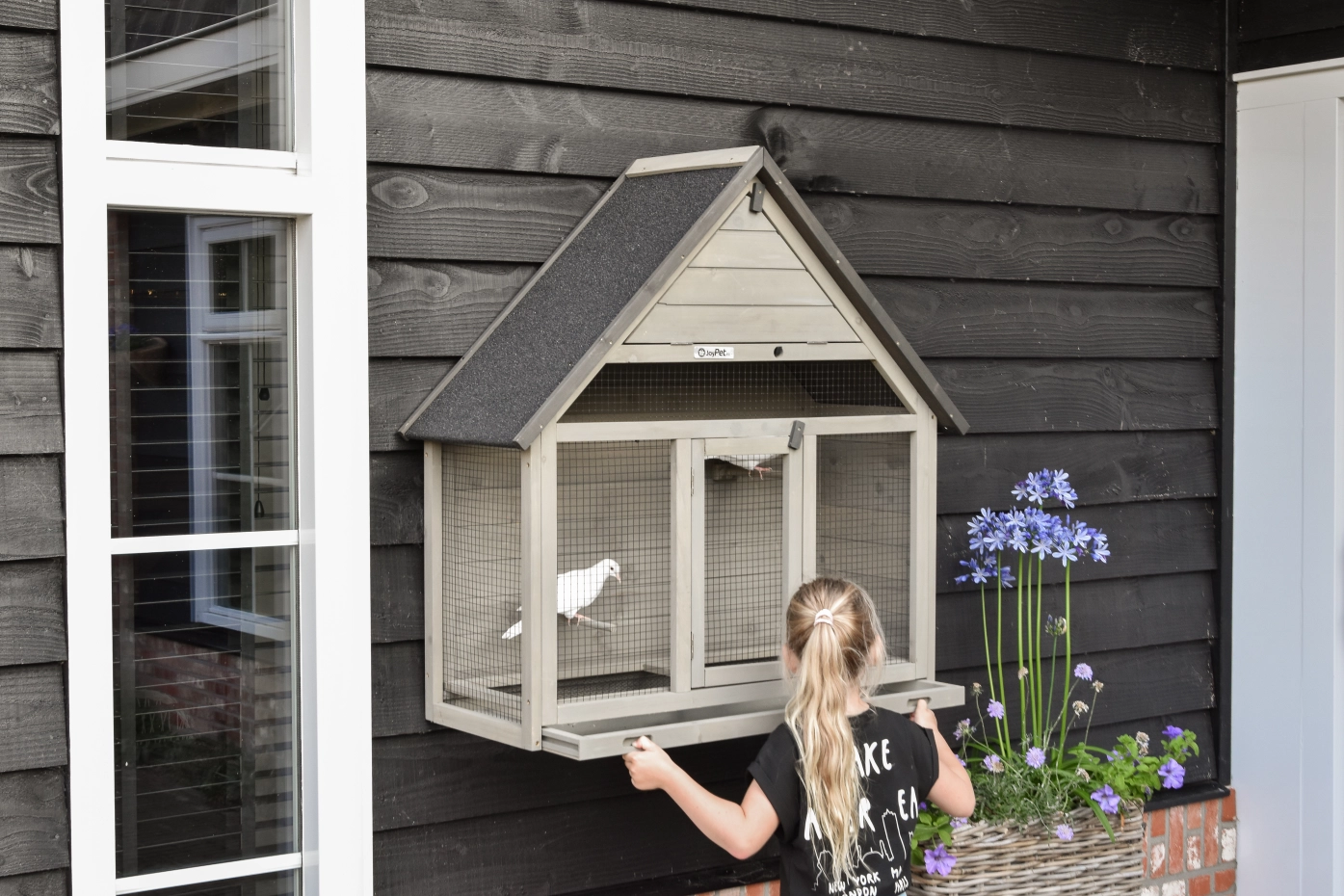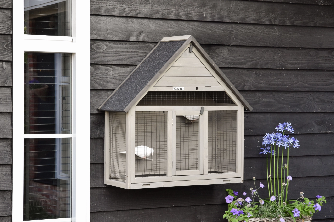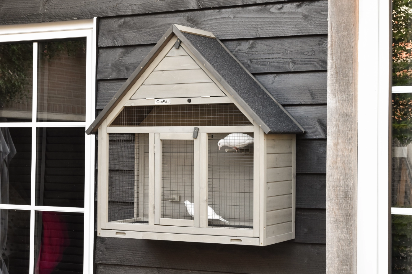 Wall Aviary Matty Large is ideal for 4 small birds or 2 slightly larger ones. It features a convenient sliding tray with a mesh panel above – keeping your birds safe during cleaning. The sleeping area can be closed off, 3 perches are included, and with the supplied hooks, you can easily hang the aviary on the wall.