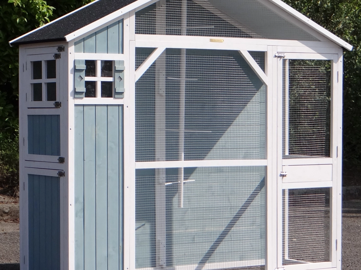 Also for aviary Amalia we have a practical solution to protect your birds against rain, wind and cold temperatures. The plexiglass is easy to assembly and to remove, so you can place it depending of the weathercircumstances.