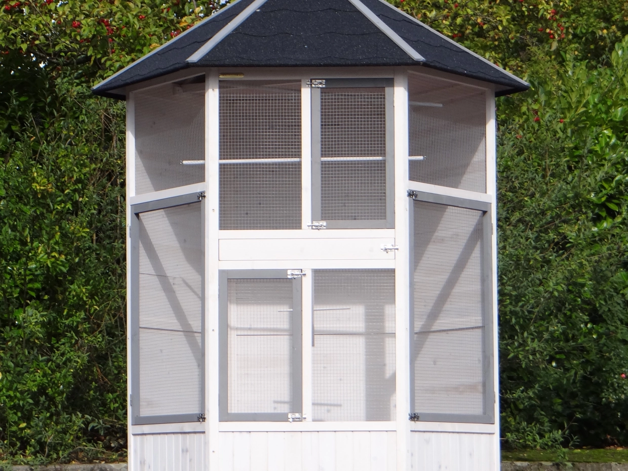 Also for aviary Evy we have a practical solution to protect your birds against rain, wind and cold temperatures. The plexiglass is easy to assembly and to remove, so you can place it depending of the weathercircumstances.