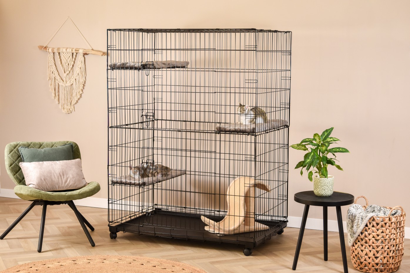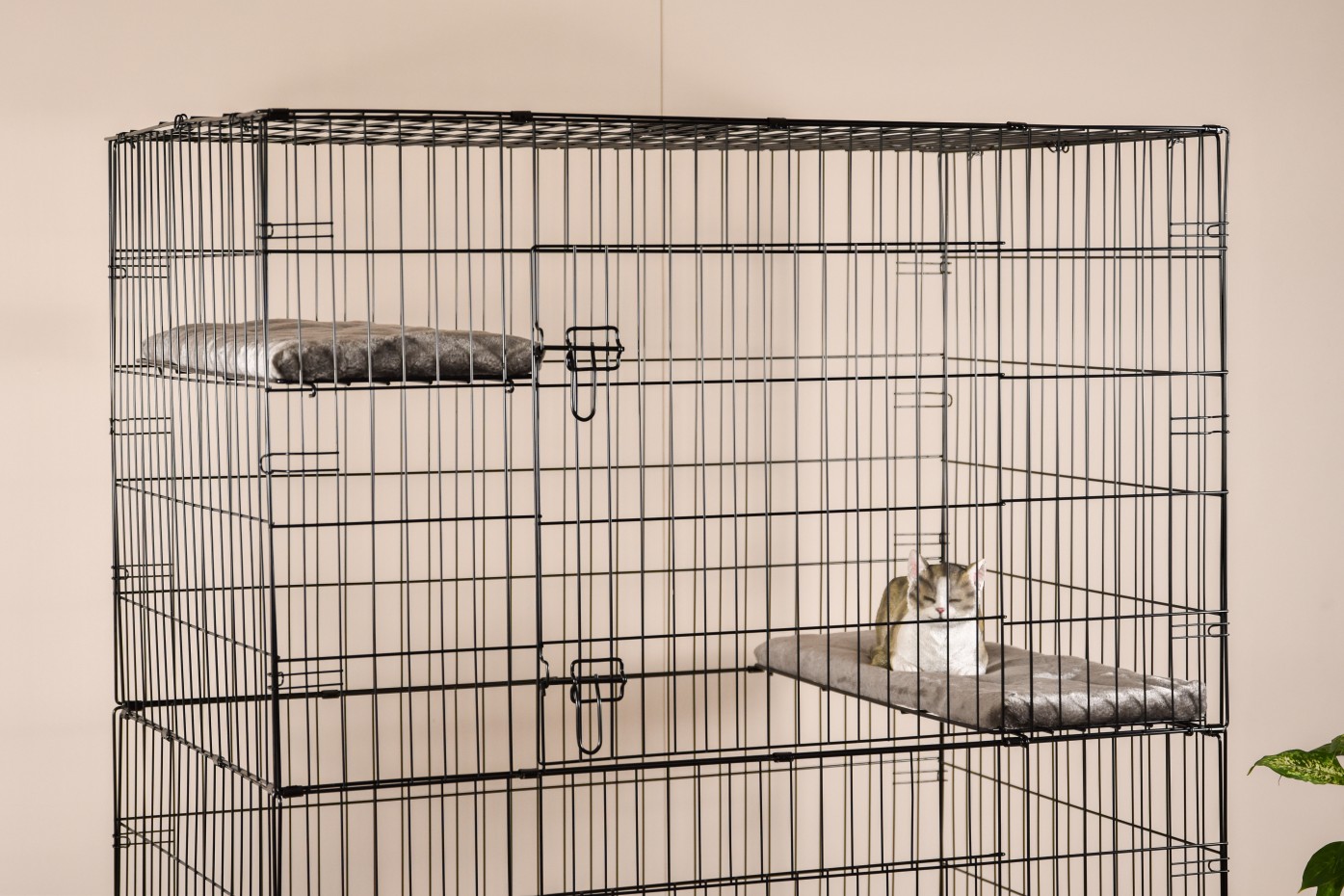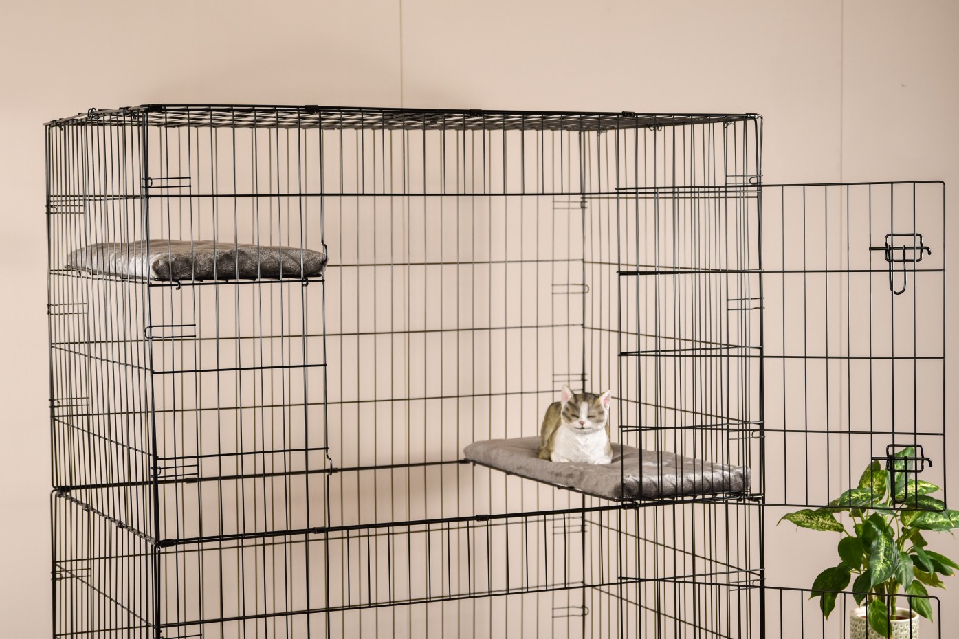 - The cat cage is equipped with 3 shelves in the corners, which are easily adjustable in height