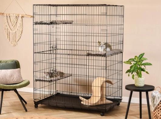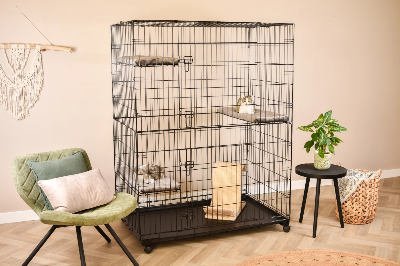 - The cat cage is easy to fold and therefore very compact to transport and store