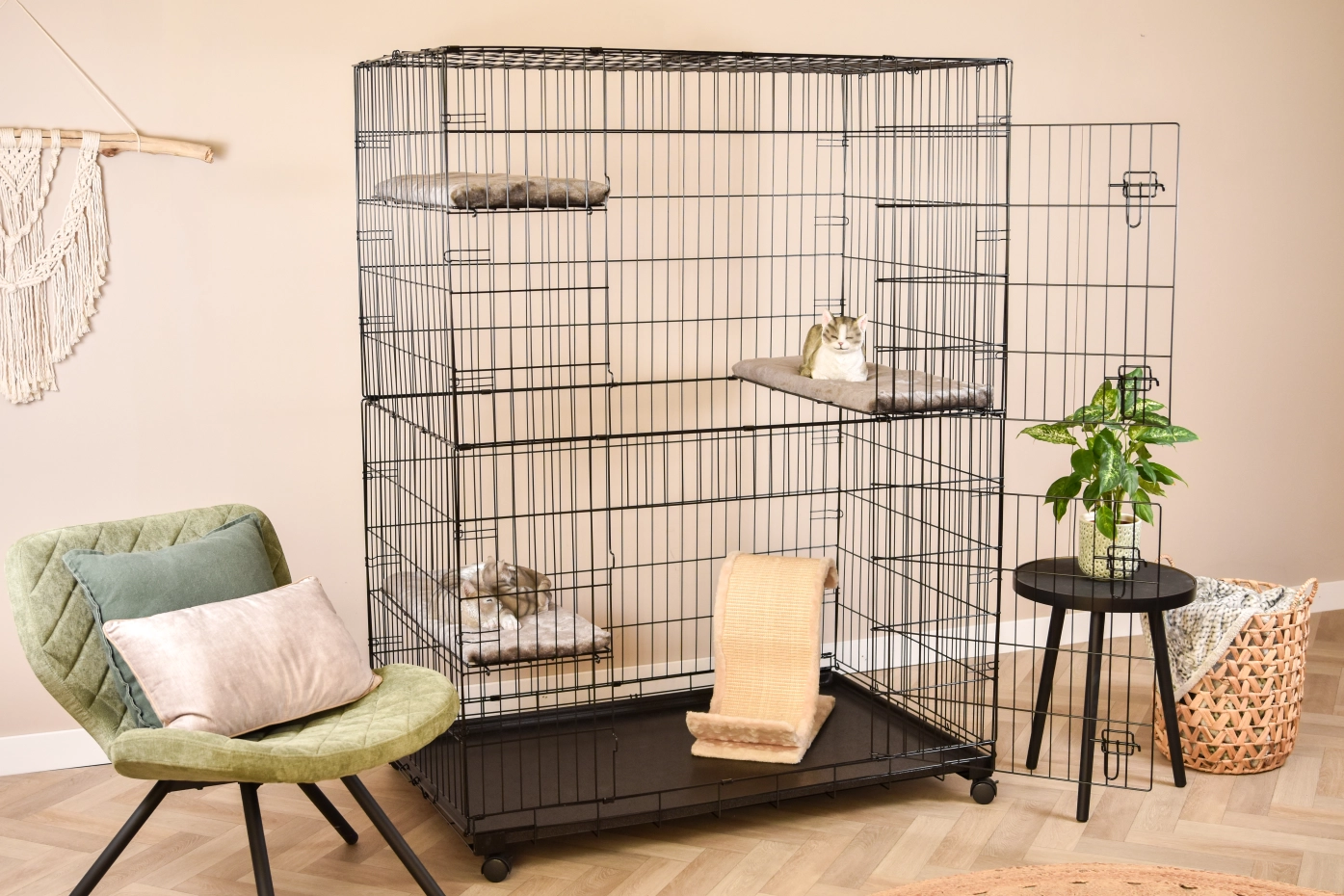 This large cat enclosure features 3 different platforms with included cushions. Each platform is individually height-adjustable, making it easy to adapt the layout to your cat.