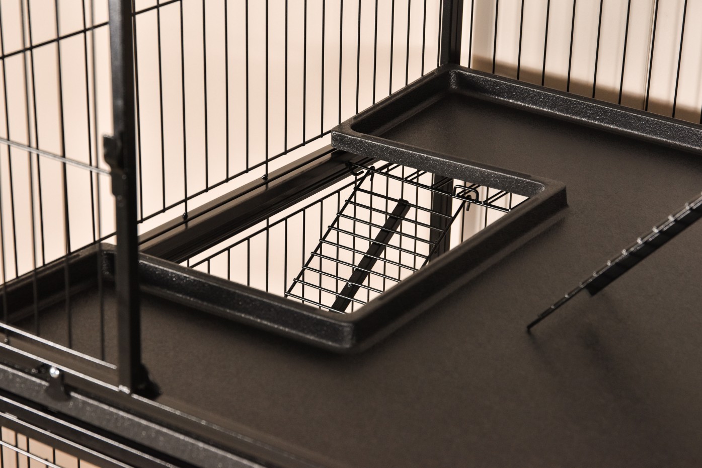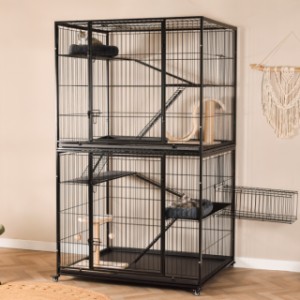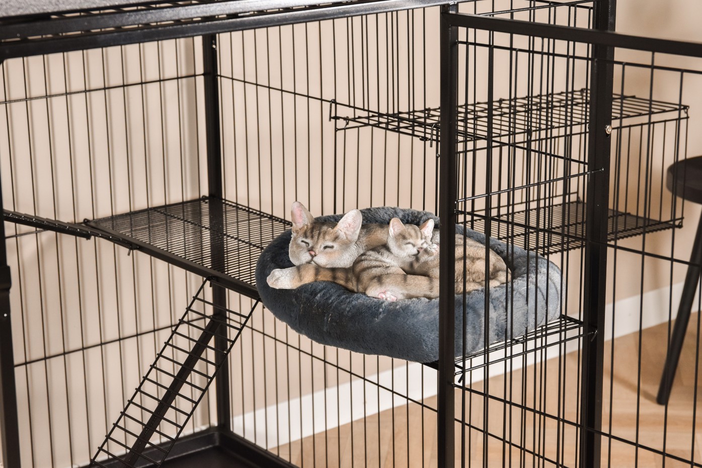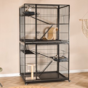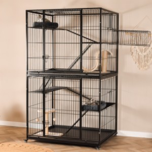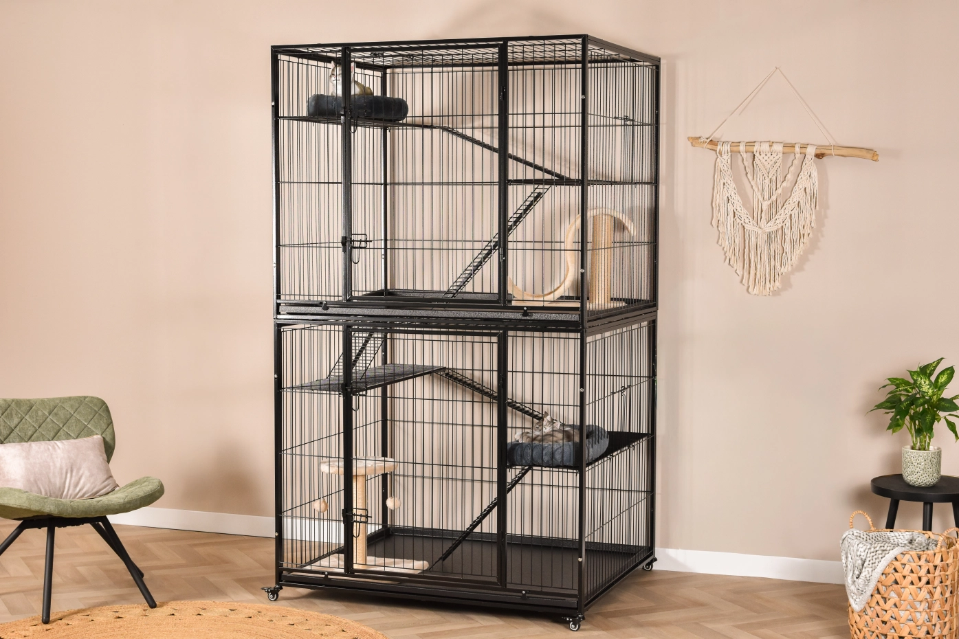 Cat Cage Nivo is a large indoor cage, suitable for indoor use, or under the porch. The cat cage has 2 floors which are connected by platforms and gangways. The opening between the two floors is lockable. This allows the two floors to be used separately from each other.