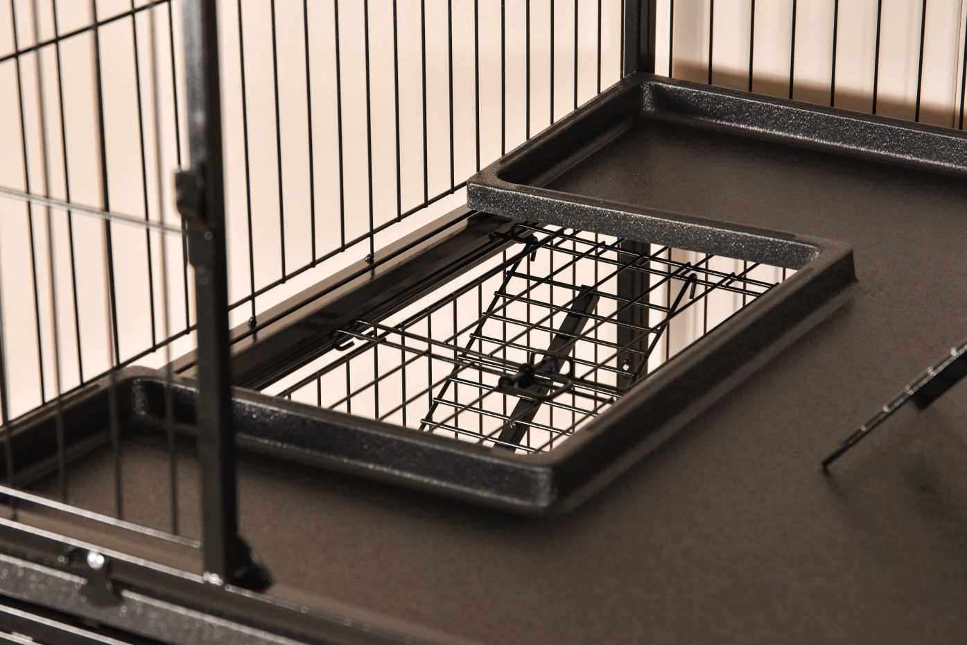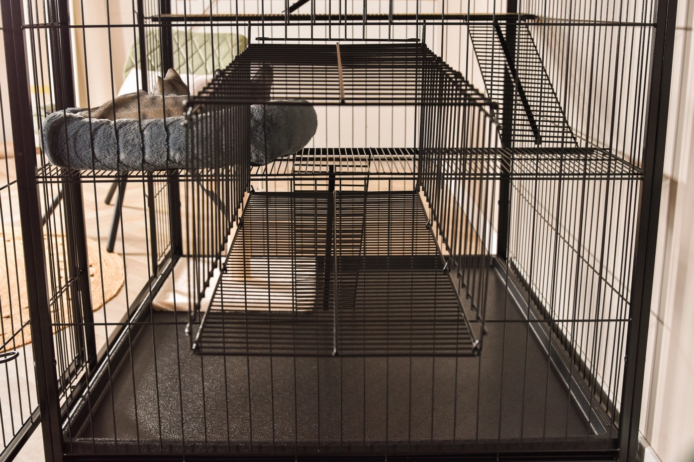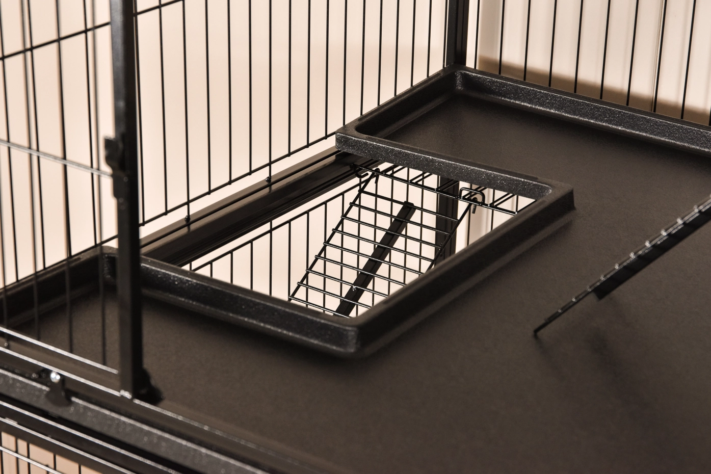 - Solid cat cage with black hammered coated bars