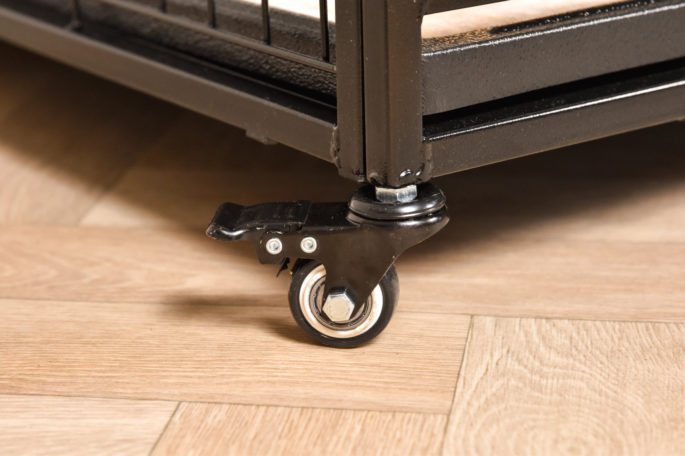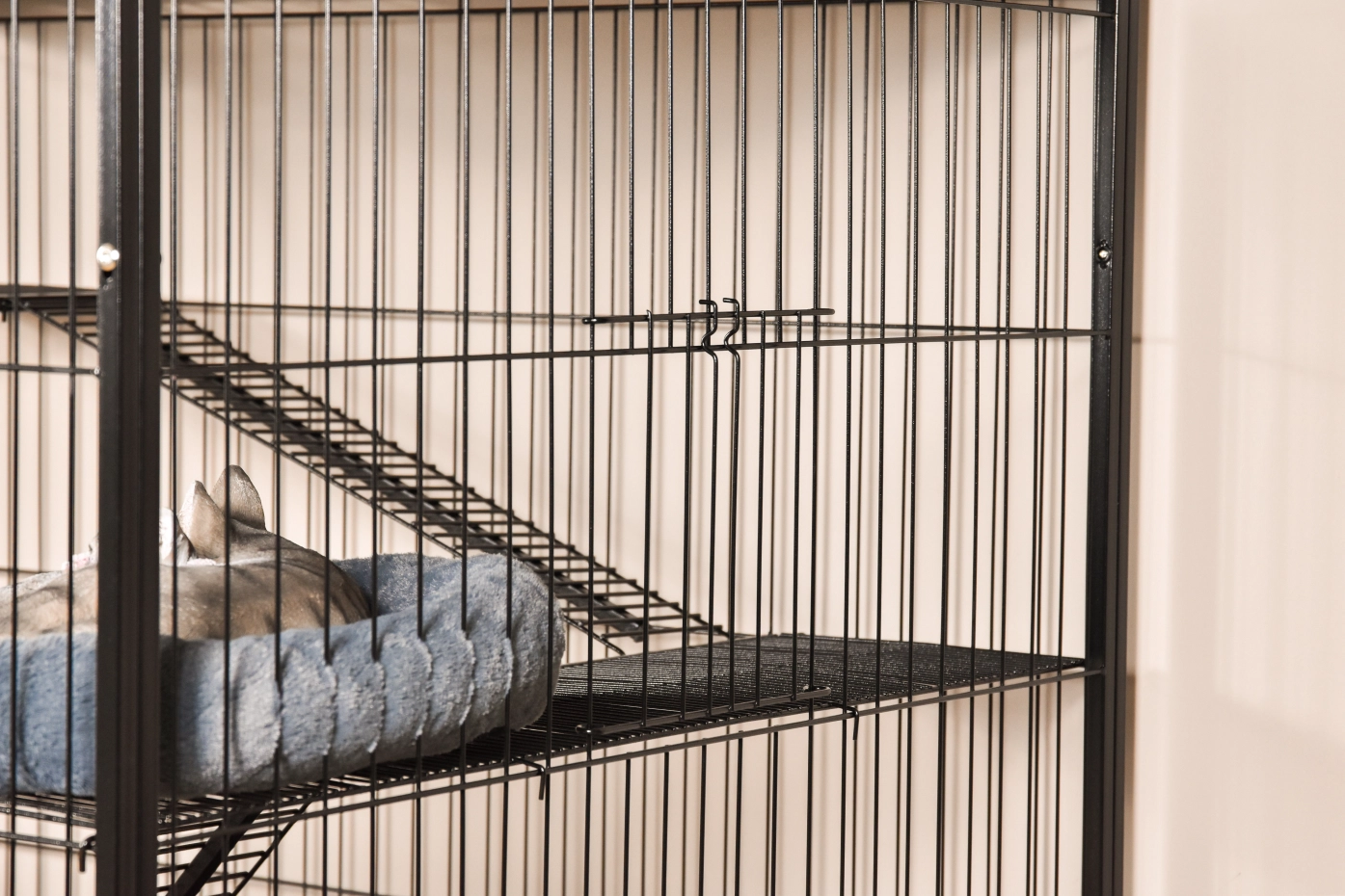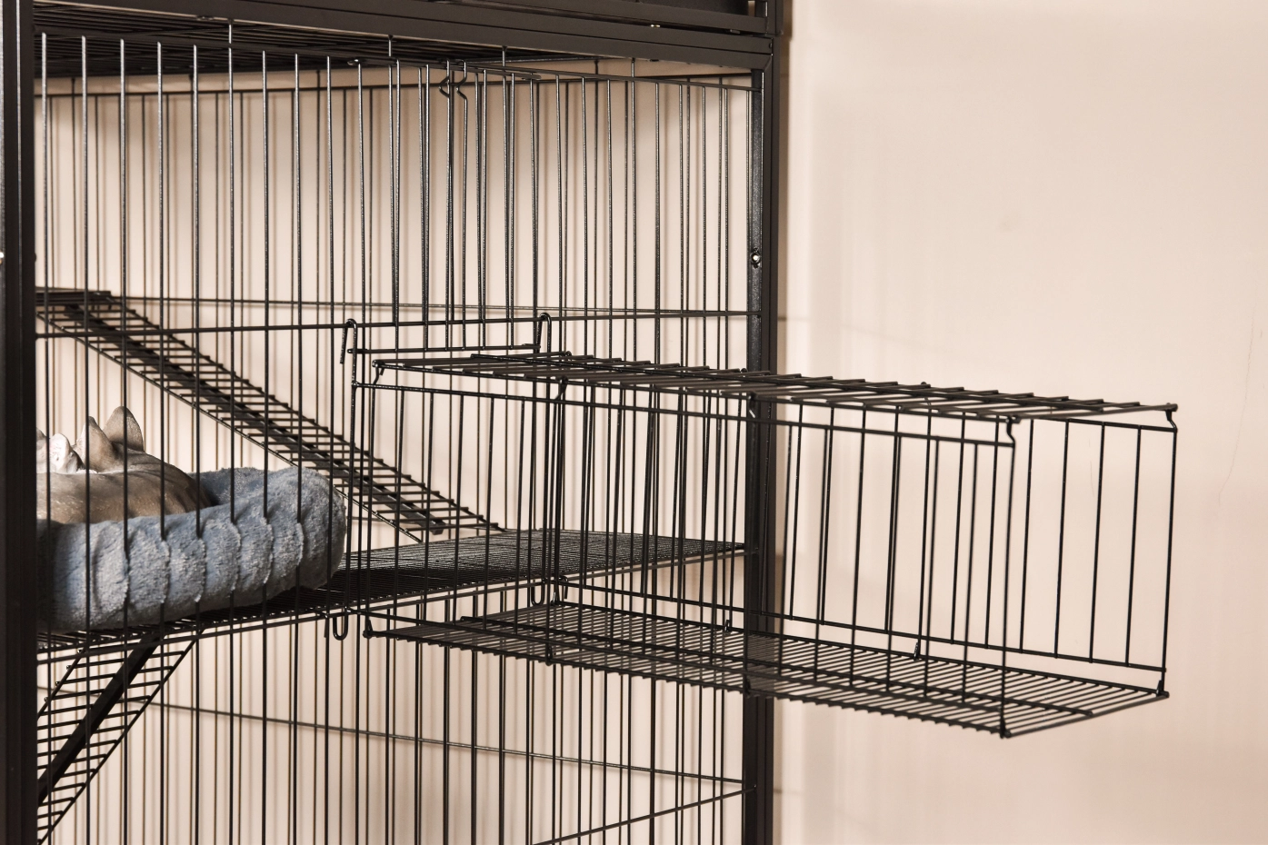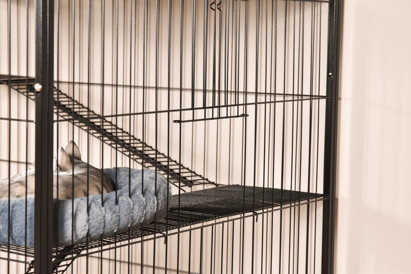 - Solid cat cage with black hammered coated bars