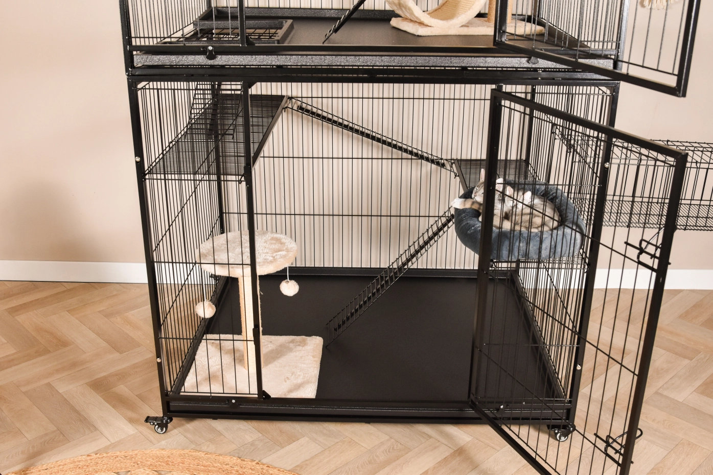 - This cat cage is equipped with 2 sturdy doors with locks