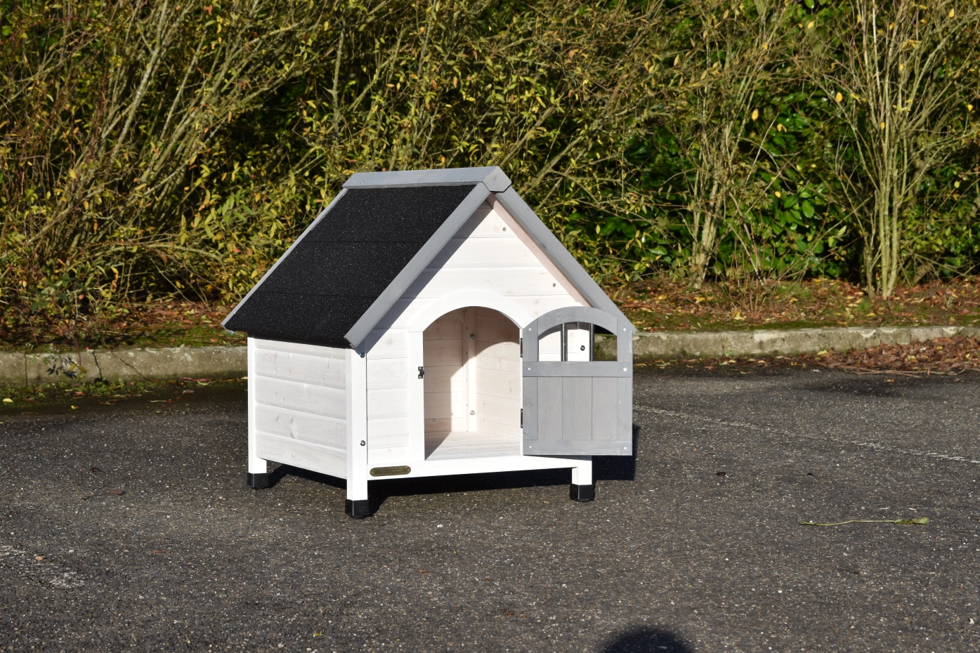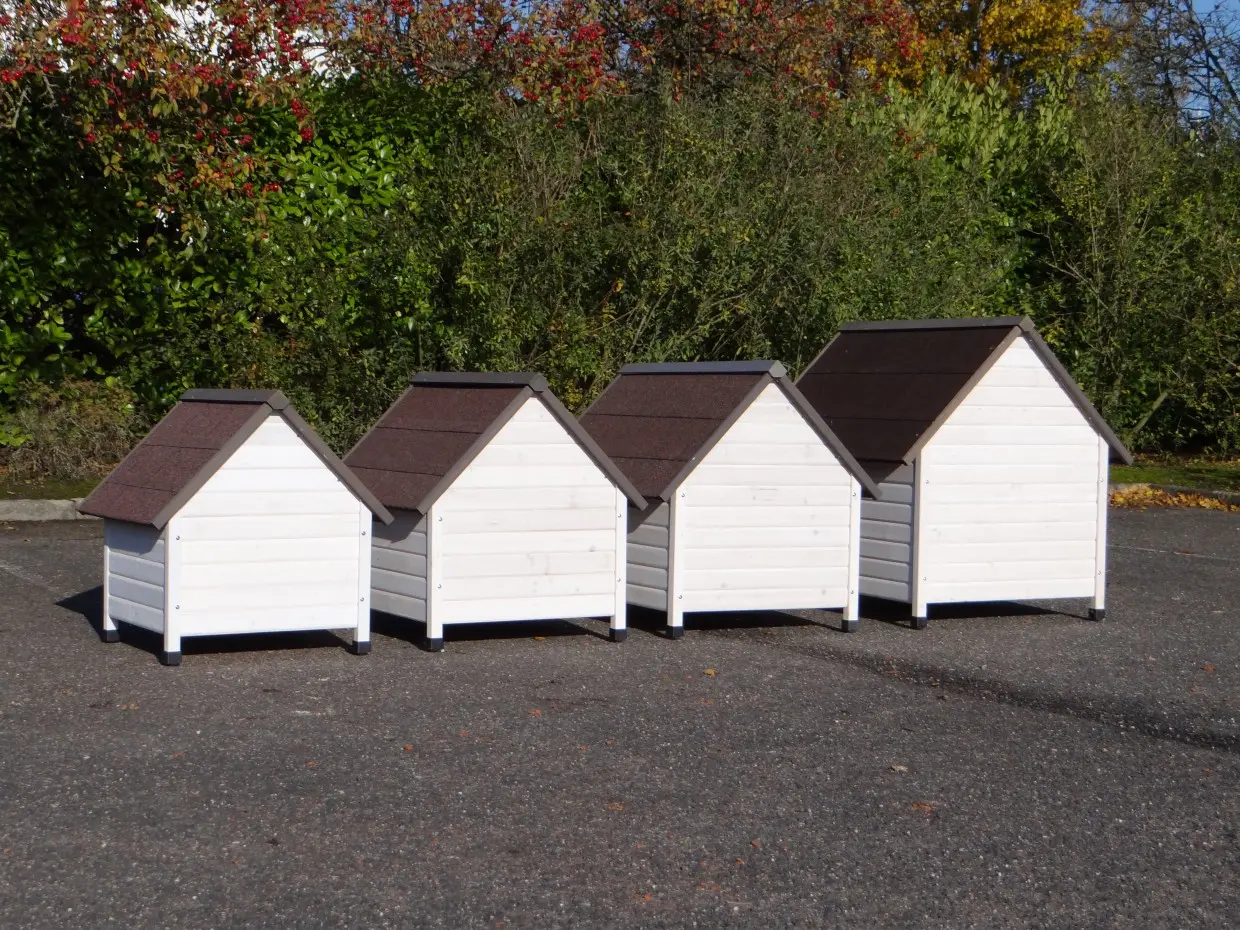 The wood, used for your pet house is a unique natural product which has been processed according to traditional methods in the country of origin, after careful selection. It is characteristic and unique in every way. This wood product has been manually processed. No single piece of wood is the same in shape, structure or color, so color shades are inevitable even within one piece of wood. Wind cracks, imperfections and the presence of large and small knots testify to their origin and years of growth. Bumps are usually manually updated with wood fill. Through use and through the influence of light, new pet houses will finally get a warmer color. Color differences in comparison with the show model or even among themselves are therefore usual. The pet house is stained in the colors as in the picture. You should do it once again to prevent mold and rot. You can easily order the stain together with the pet house.