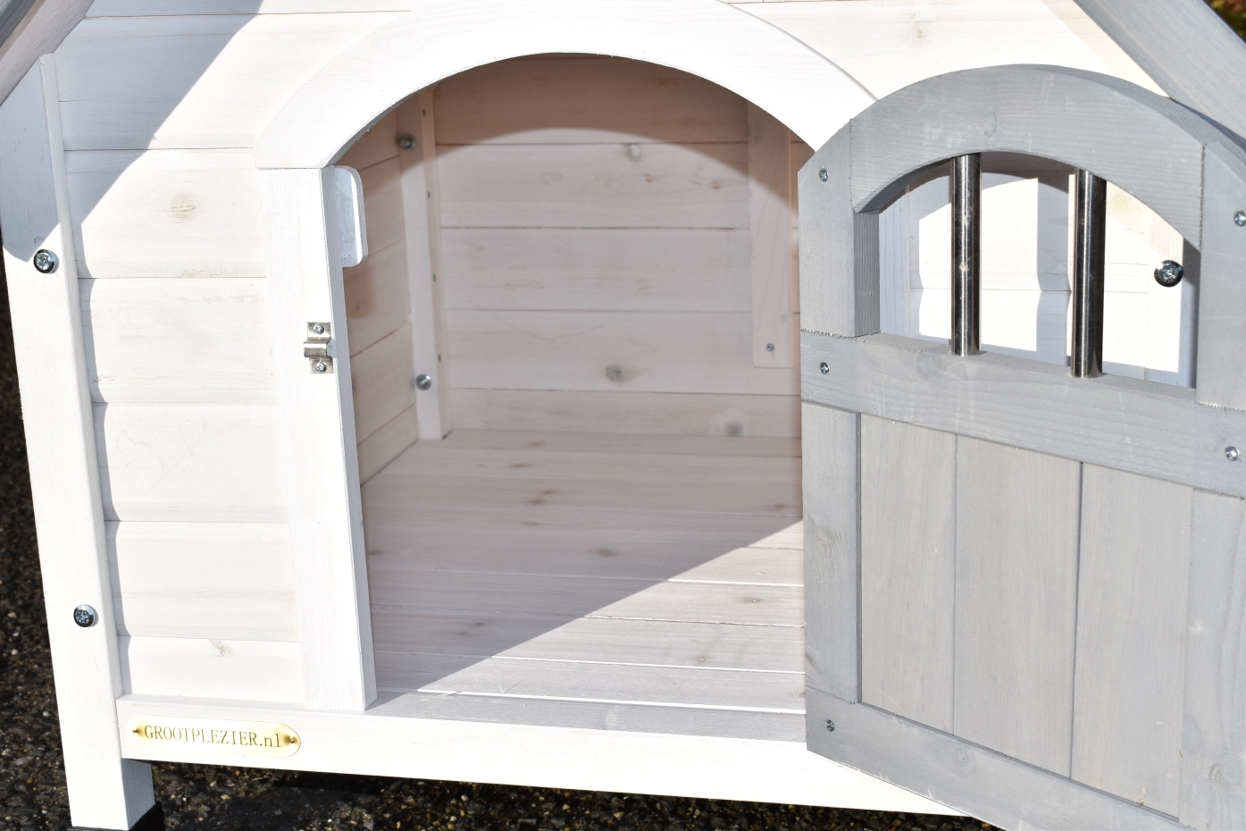 It is advisable to treat the hinges and locks periodically with silicone spray or lock spray to prevent rust and corrosion. If the pet house is not in a covered place, we advise you to anchor the house.