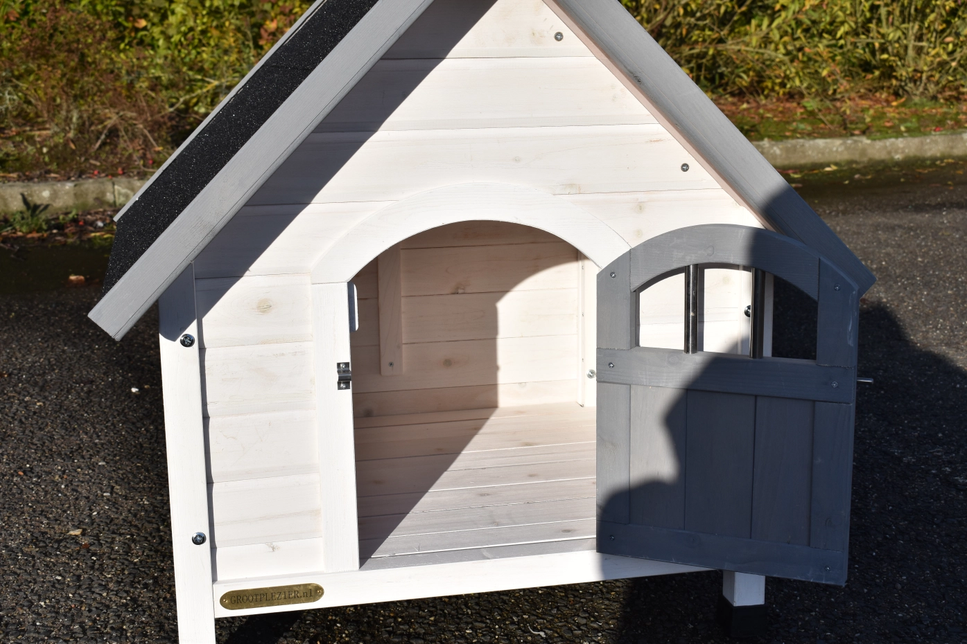 - The roof of this pet house is equipped with roofing felt