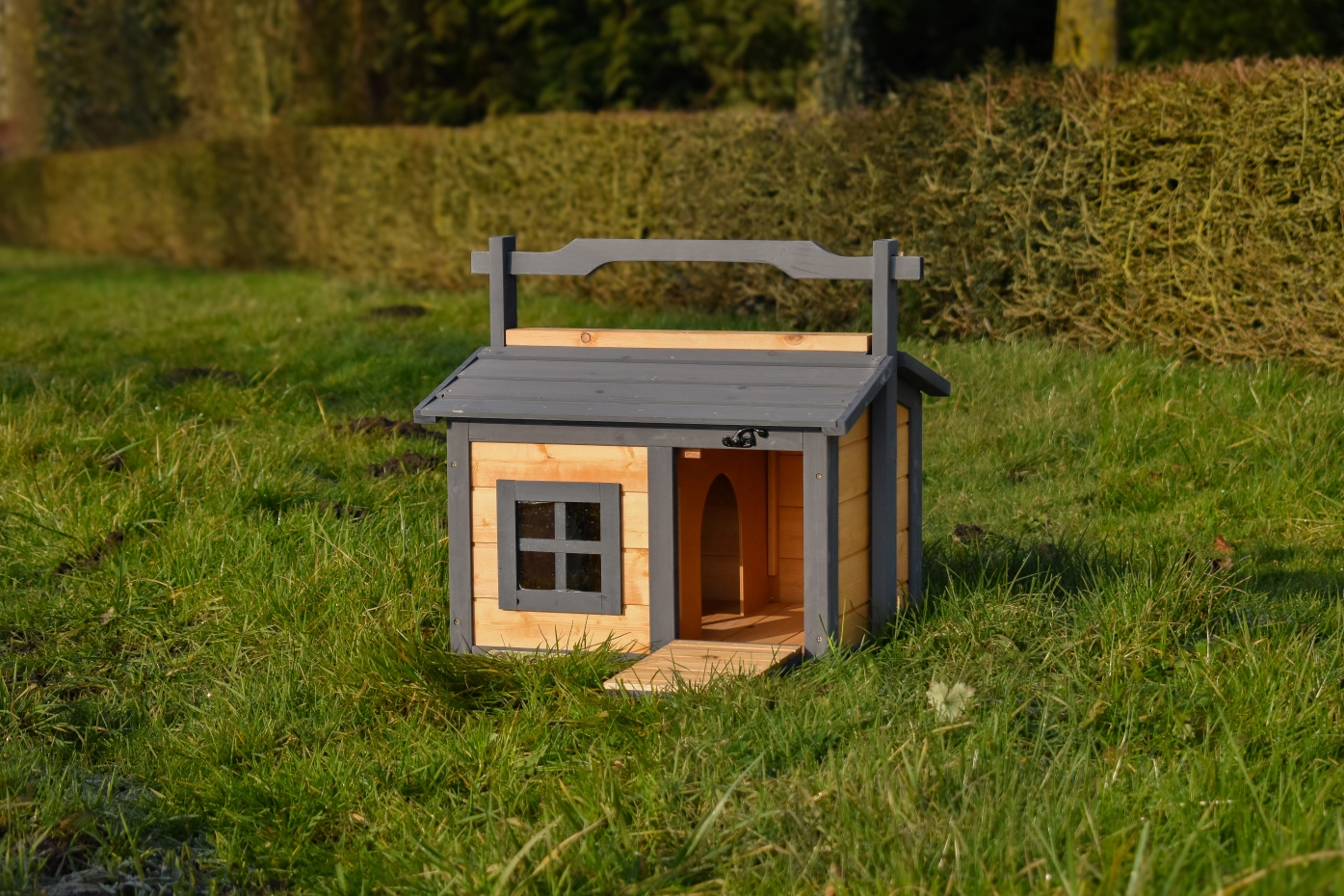 - The pet house is made of beautiful pine wood