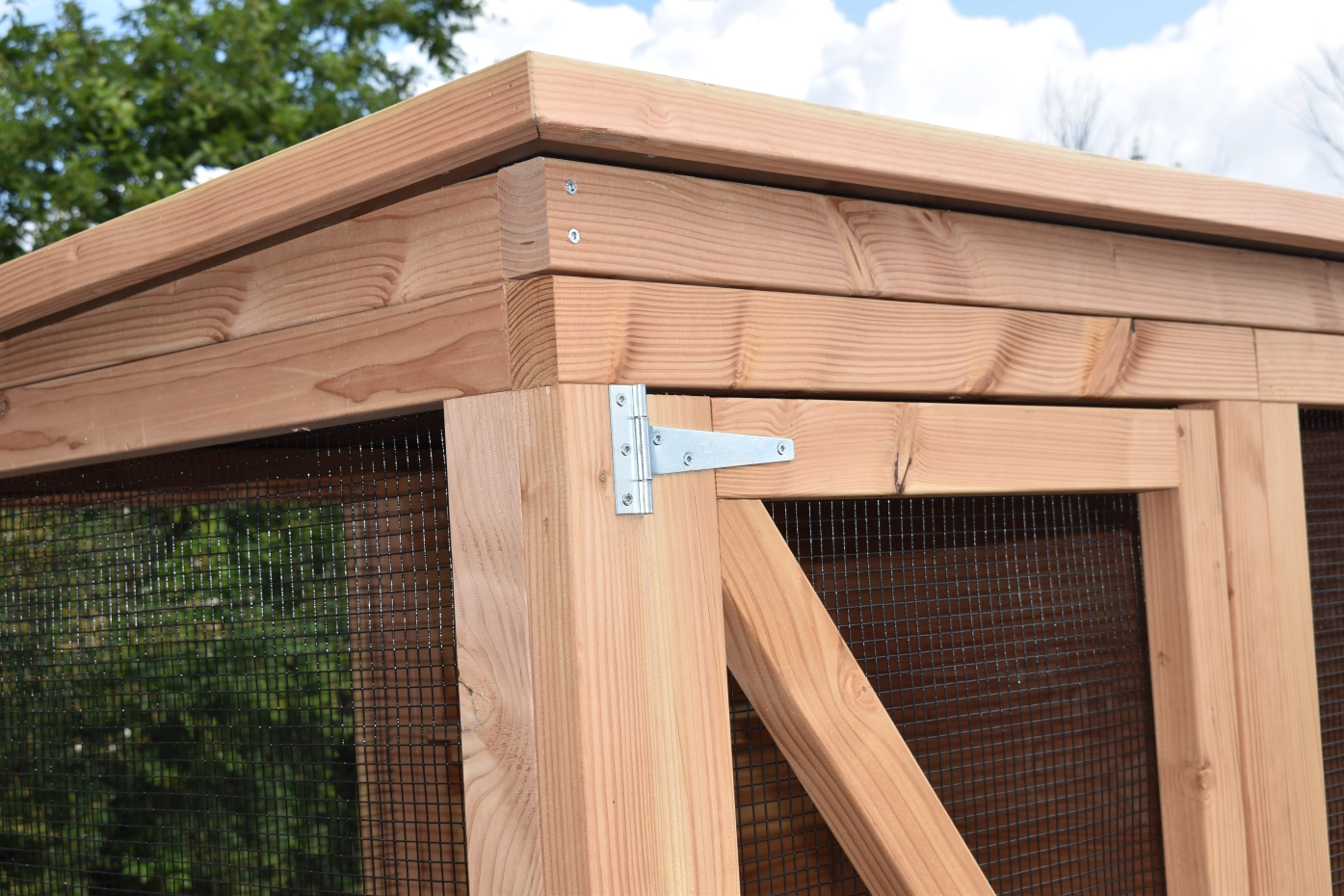 - The hutch is made of panels of 180x85cm or 180x120cm. This can be screwed together. Drill bit, screws and bits are included.