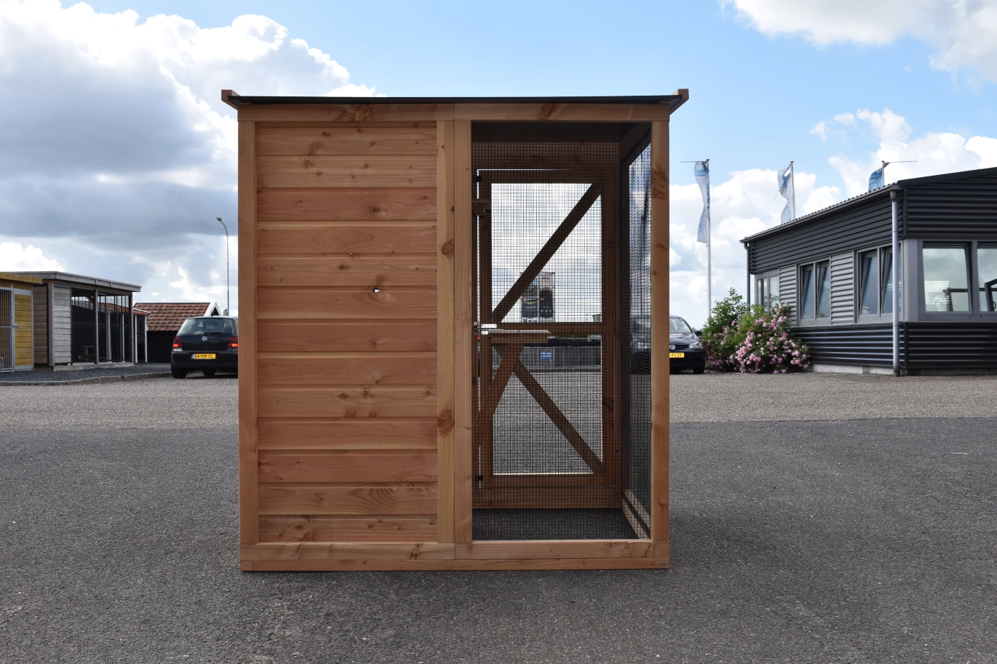 Cat run Flex 2.1+ is a nice playground for your cat(s), so that they can play safely on your balcony or in your garden! The run is partially provided with a closed roof and partially with a mesh roof. You can easily adapt the run after your own wishes. The cat run will be delivered without climbing boards, lying platform and climbing pole.