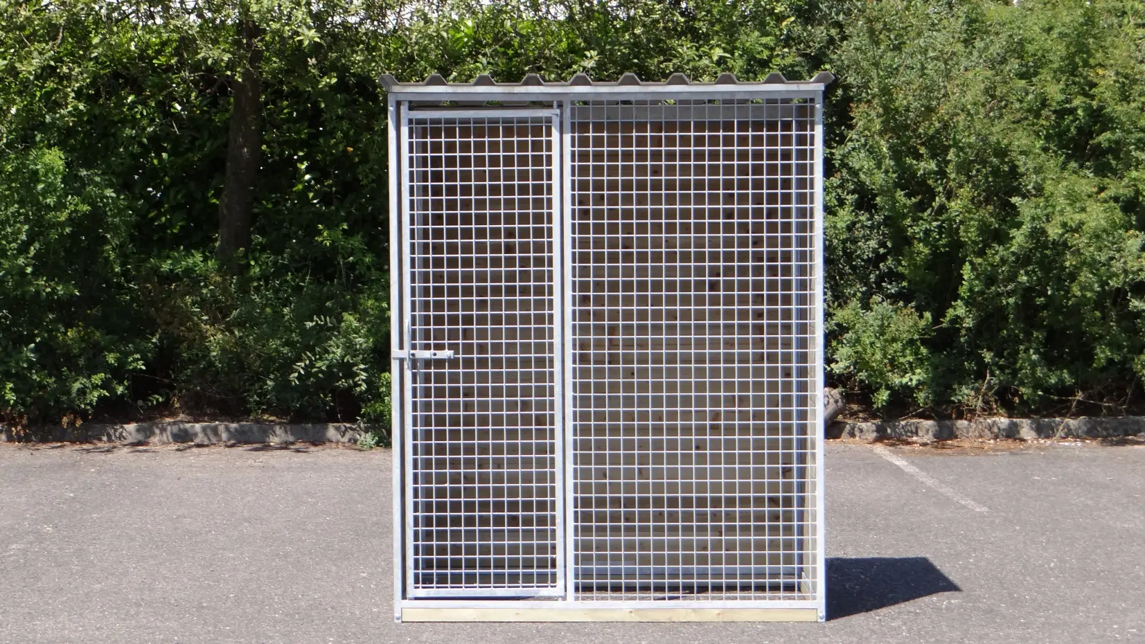 - The kennel door is standard on the left side, opens inwards and has the option of a padlock