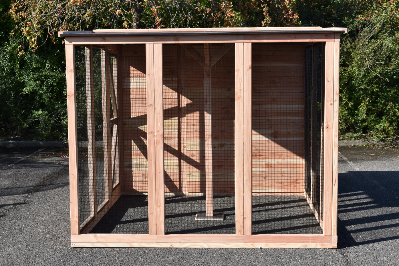 The cat run Flex 3.3 is a beautiful, practical, and luxurious shelter for your cats in the garden. The gable roof is completely closed, so the cats can always stay dry inside the run. This composite cat enclosure can be easily expanded or customized. This large cat enclosure is supplied without a resting platform and climbing planks.