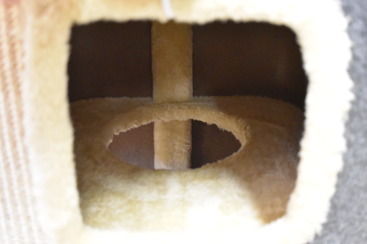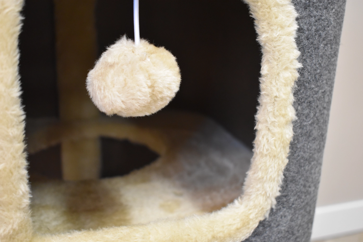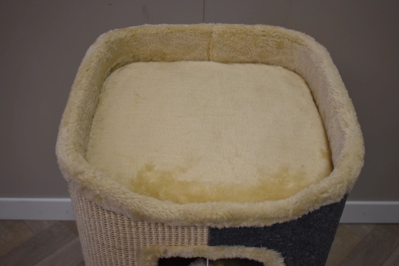 The scratching barrel Kadee has 3 little houses and on top a lying platform. The barrel has a sisal-part, so that your cat has many possiblities for scratching. The barrel is suitable for small till medium sized cats.