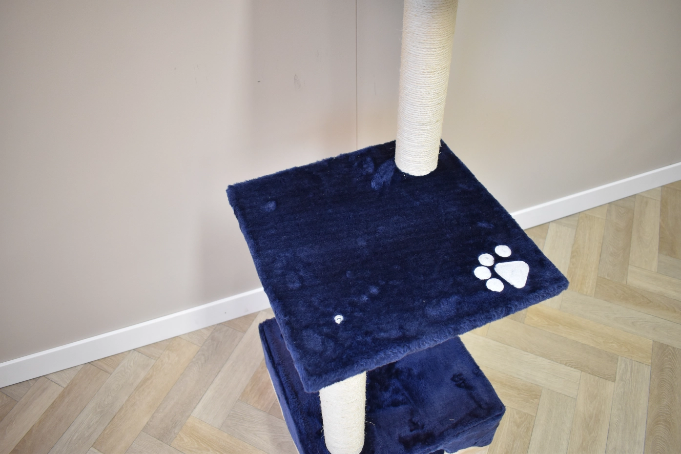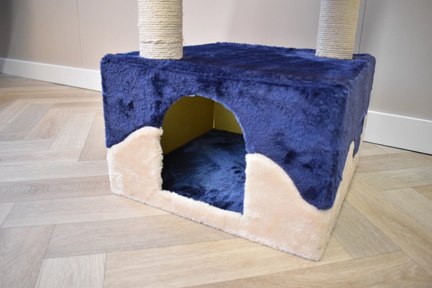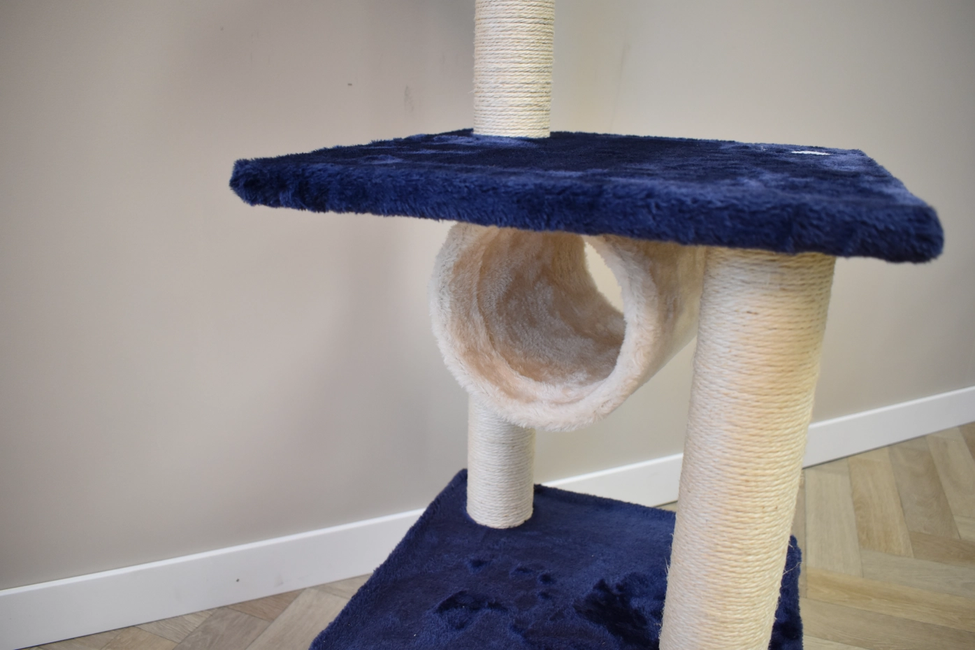 The scratching post Kailey offers a lot of fun for your cats! The post has a little house, 2 lying platforms, sisal poles and a tunnel. This beautiful scratching post is suitable for small till medium sized cats.