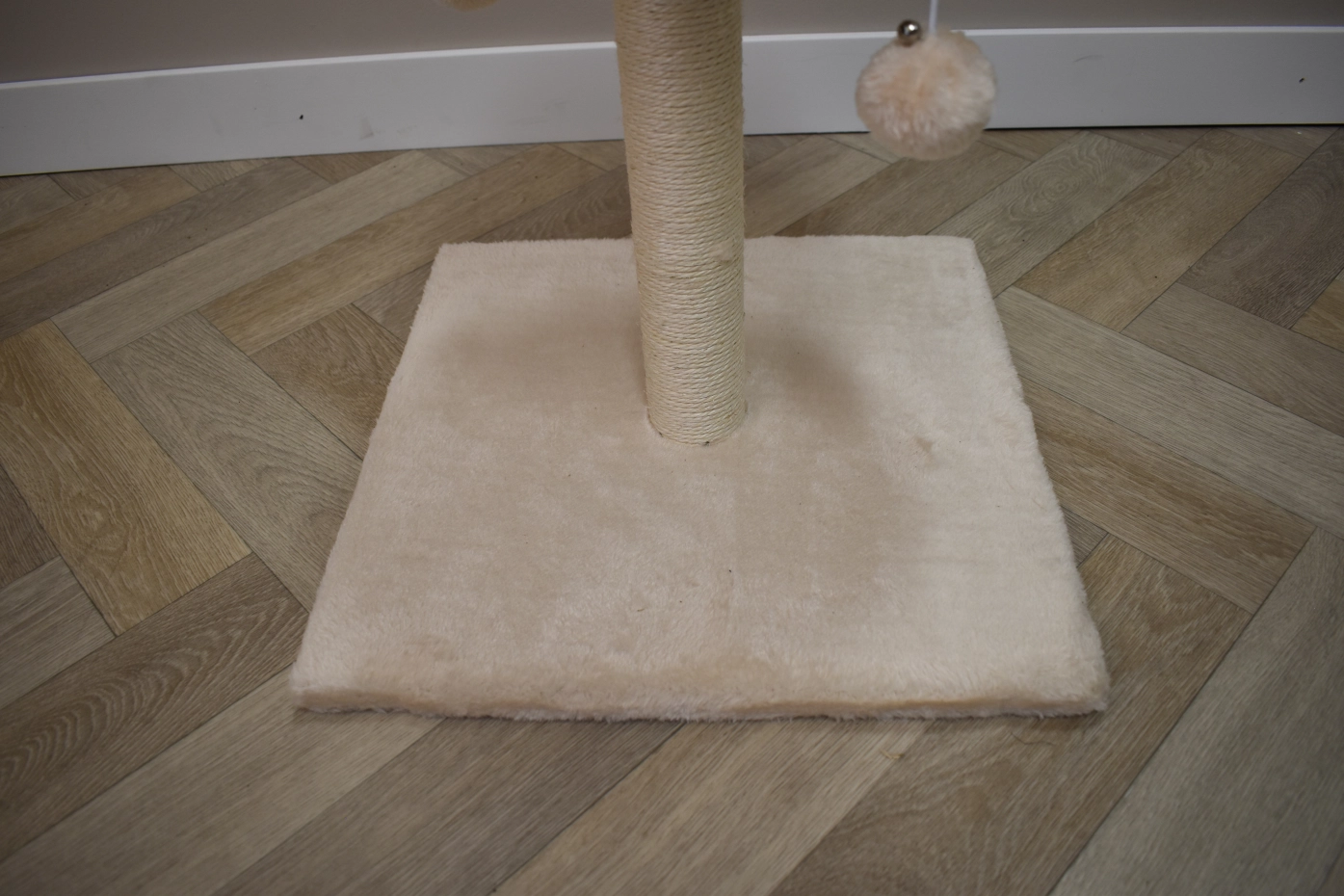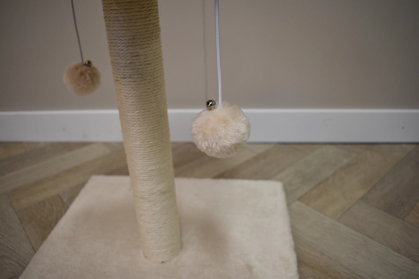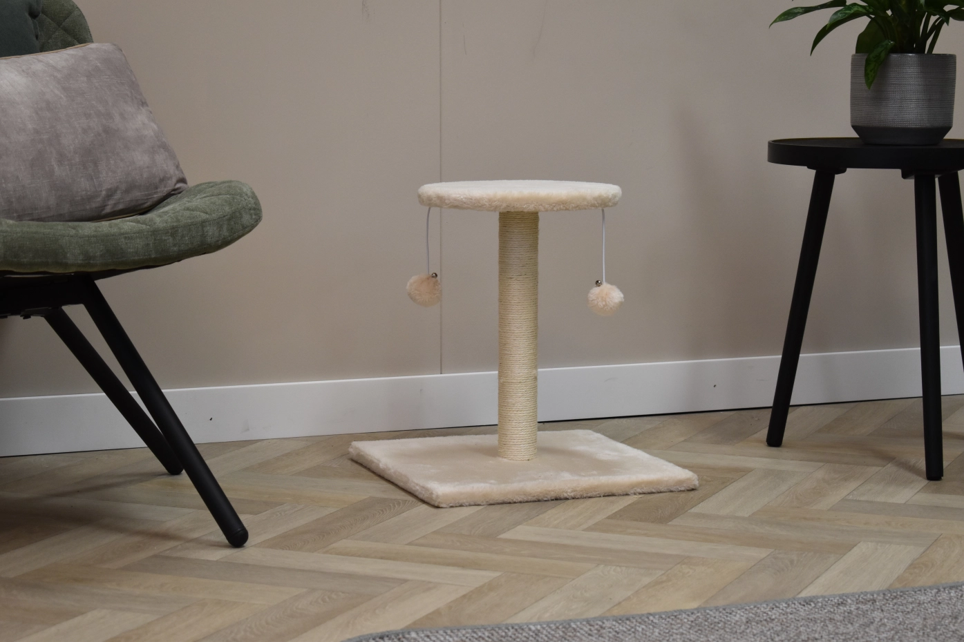 The scratching post Kinsey offers your cats many possibilities to play and climb. The scratching post has a sisal-pole, a lying platform and 2 little balls. This beautiful scratching post is suitable for small till medium sized cats.