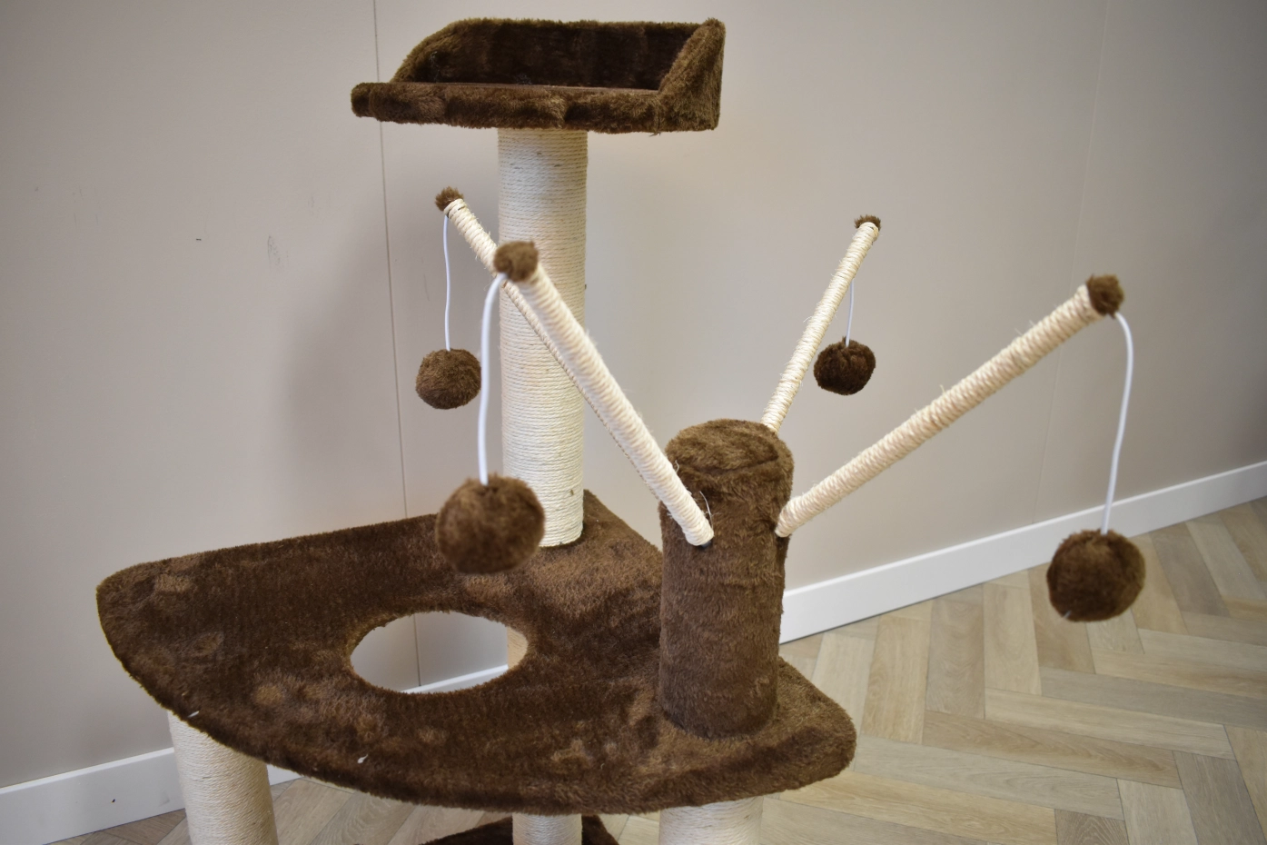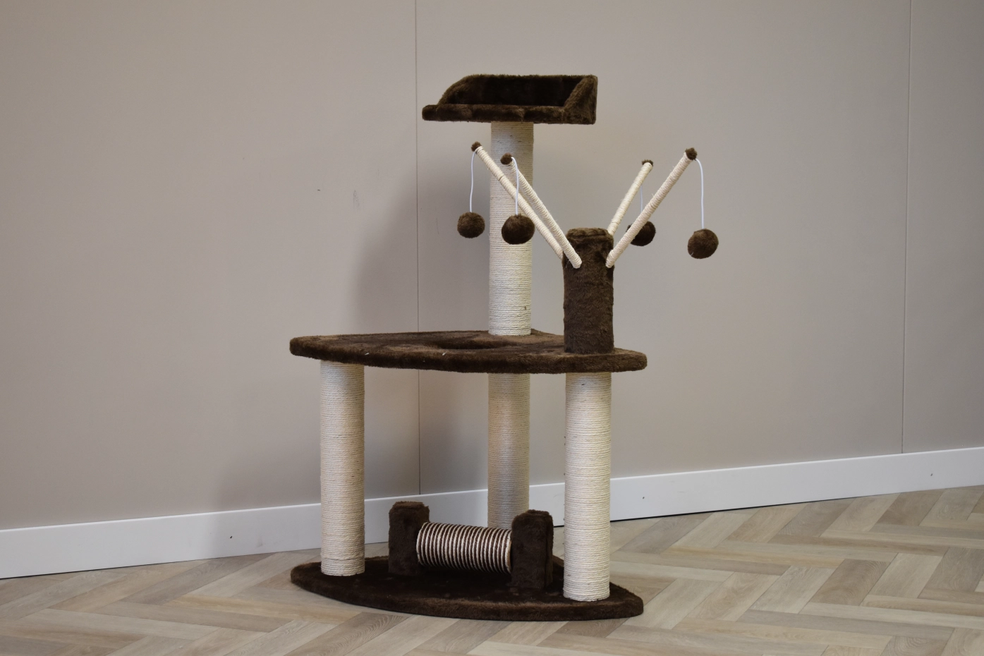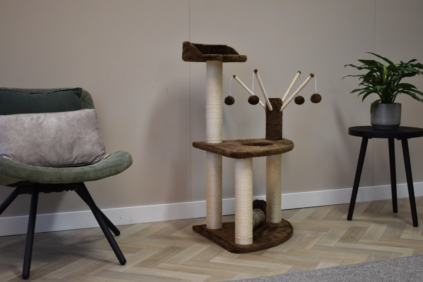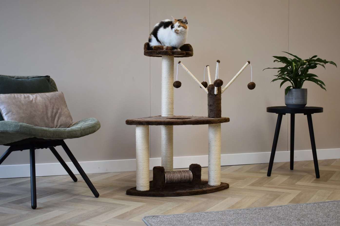 The scratching post Kira offers a lot of fun for your cats! The pole has 2 lying platforms, a sisal-roll and a stick with little balls. The scratching post is suitable for small till medium sized cats.