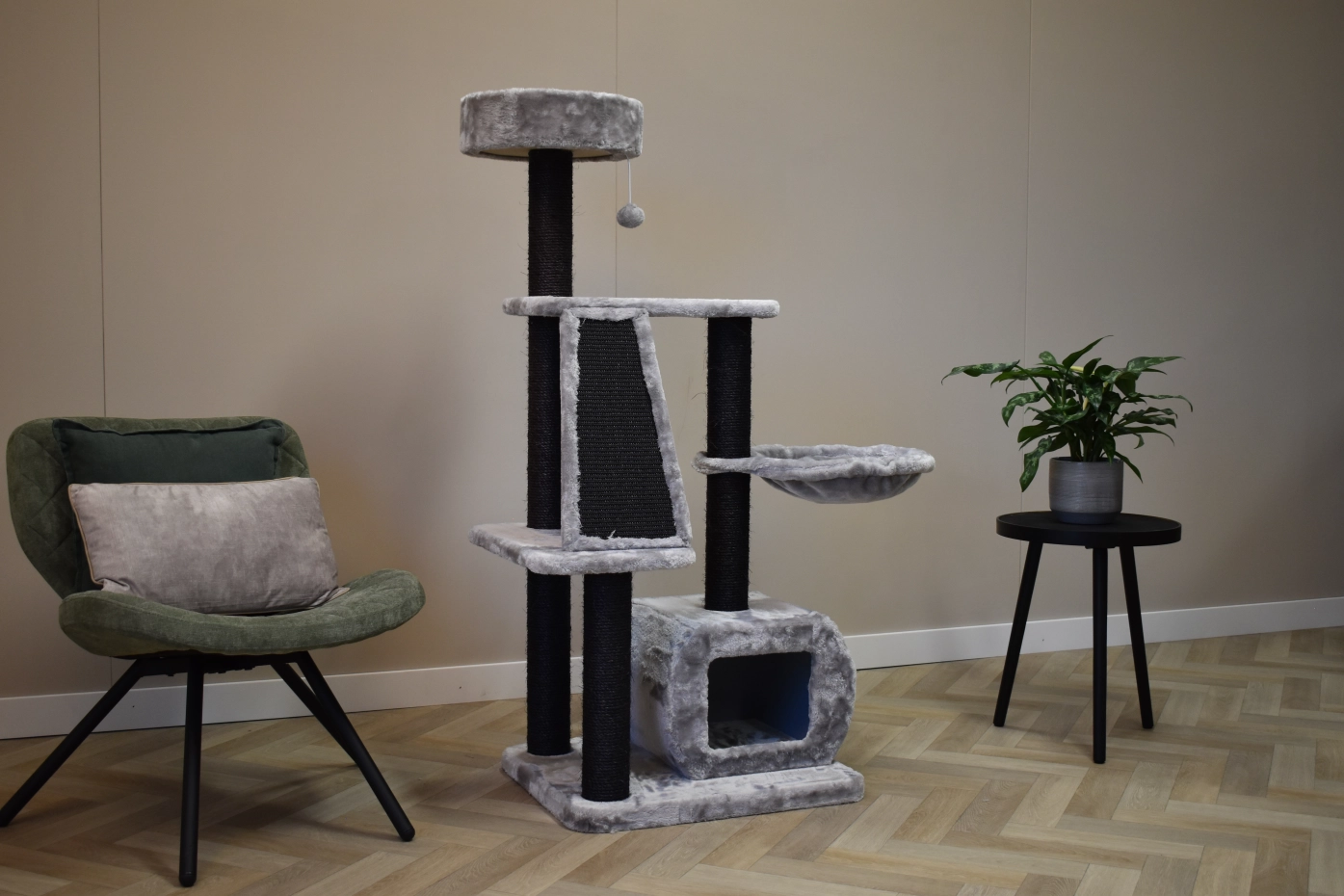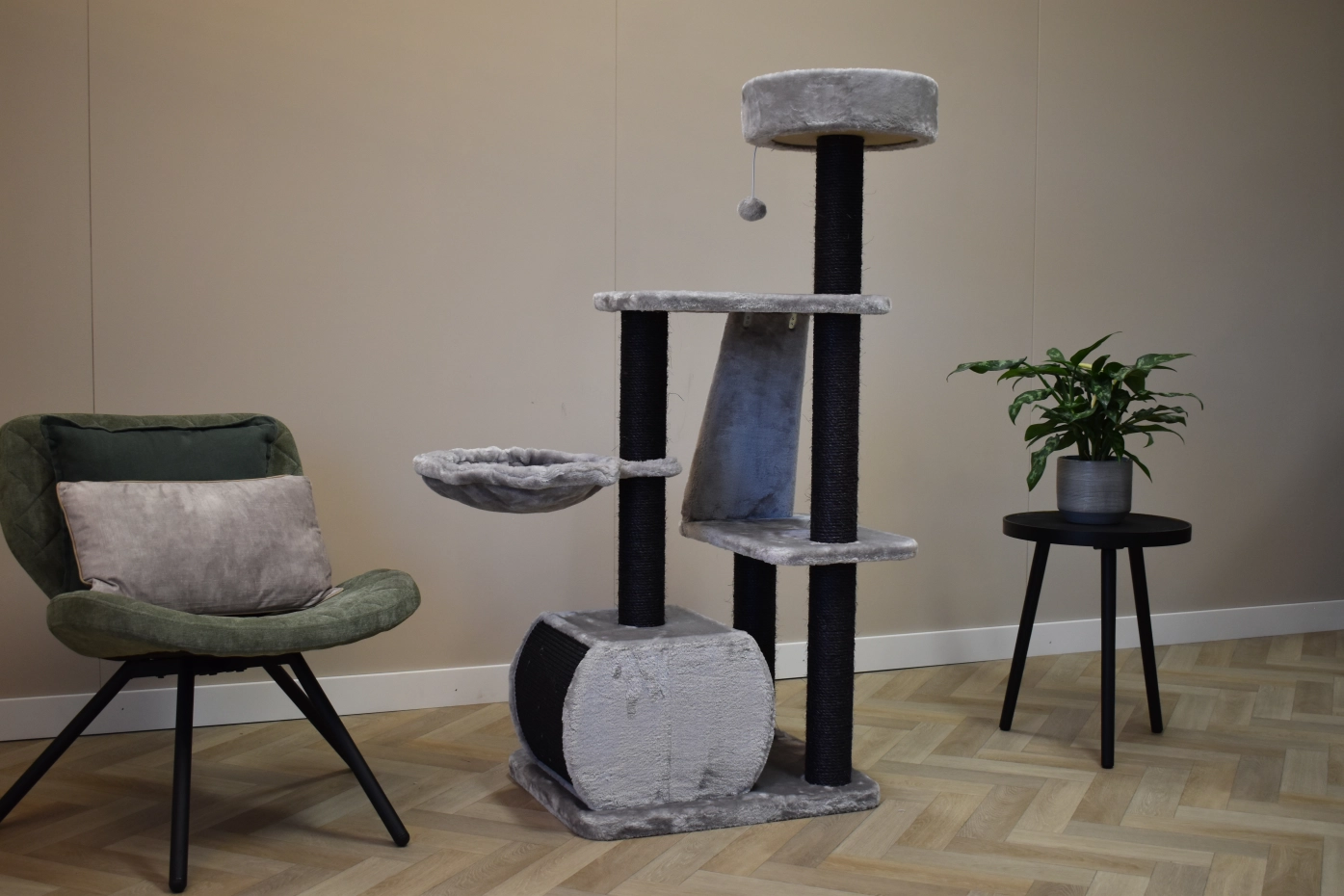 The scratching post Krabbel offers a lot of space for your cats! The cat post has lying platforms, sisal poles and a little house. This beautiful scratching post is suitable for little till medium sized cats.