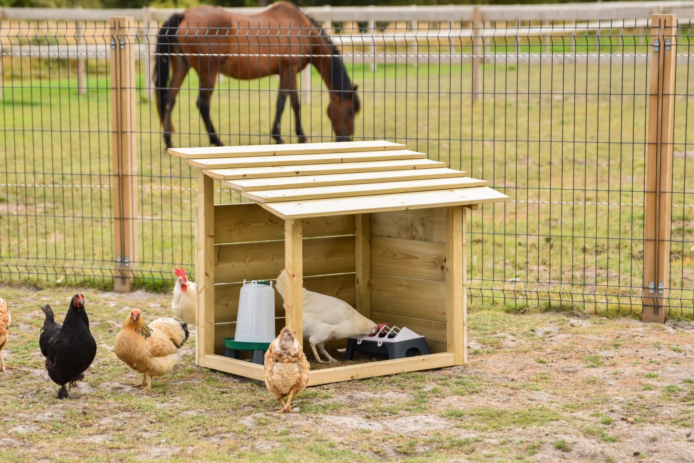 Chicken shelter for eating, drinking and rest