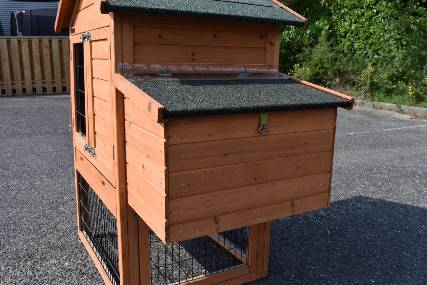 The wood, used for your pet house is a unique natural product which has been processed according to traditional methods in the country of origin, after careful selection. It is characteristic and unique in every way. This wood product has been manually processed. No single piece of wood is the same in shape, structure or color, so color shades are inevitable even within one piece of wood. Wind cracks, imperfections and the presence of large and small knots testify to their origin and years of growth. Bumps are usually manually updated with wood fill. Through use and through the influence of light, new pet houses will finally get a warmer color. Color differences in comparison with the show model or even among themselves are therefore usual. The pet house is stained in the colors as in the picture. You should do it once again to prevent mold and rot. You can easily order the stain together with the pet house.