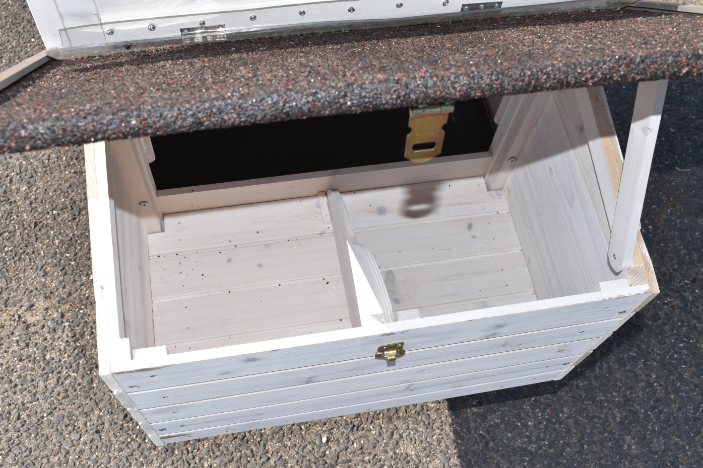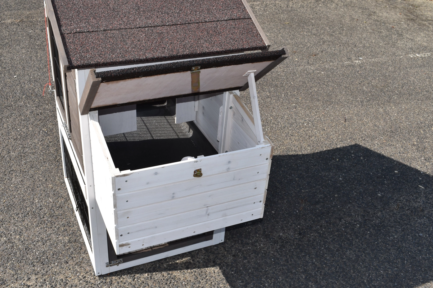 It is advisable to treat the hinges and locks periodically with silicone spray or lock spray to prevent rust and corrosion. If the pet house is not in a covered place, we advise you to anchor the house.