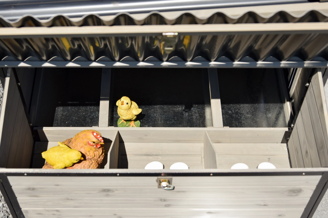 The Judy nesting box can be ordered separately and easily attached to your Judy coop. Enjoy fresh eggs for breakfast! No Judy in your garden yet? Check out the complete sets in the beautiful grey colour!