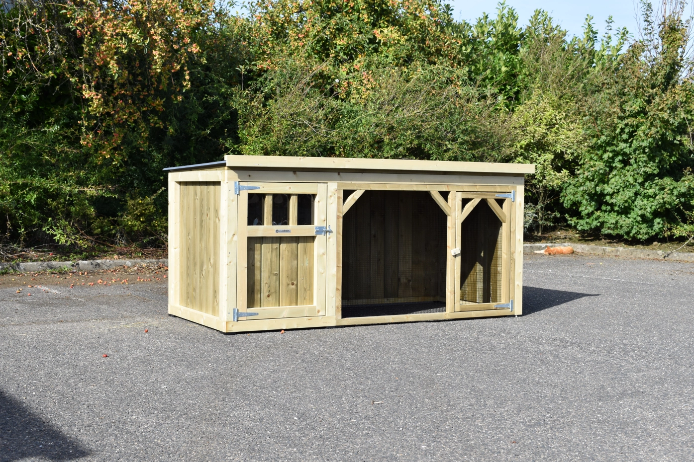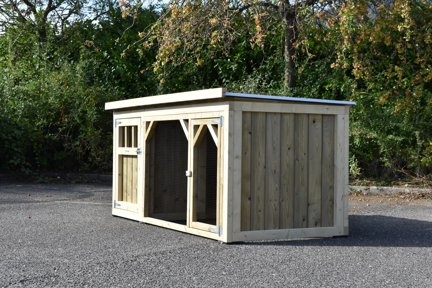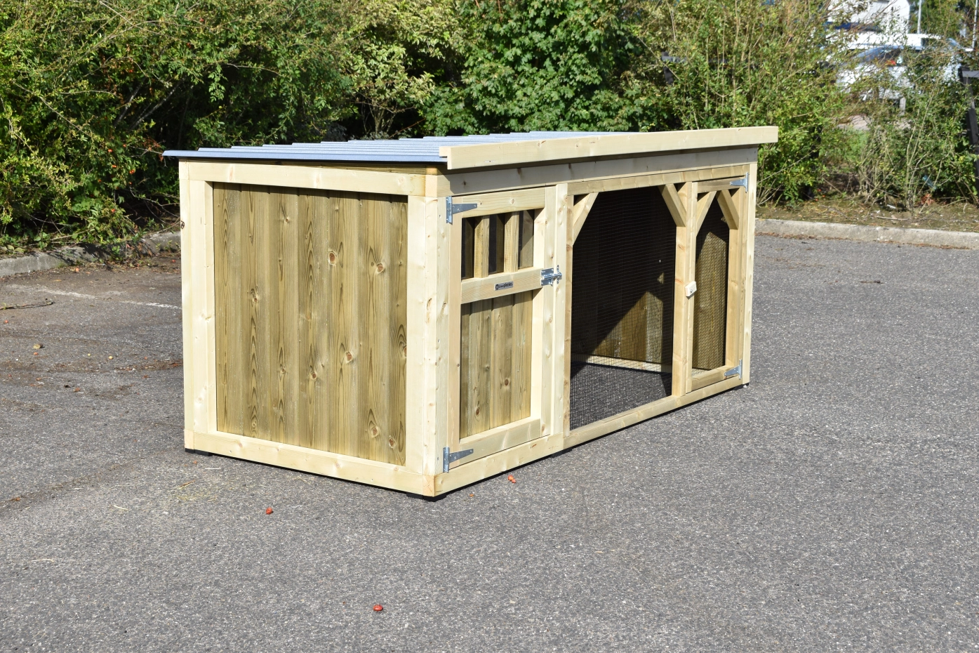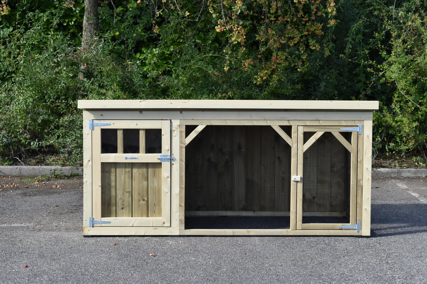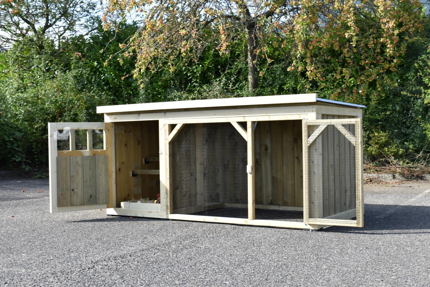 Chickencoop Belle 1 is a beautiful hutch with a covered run. The sleeping compartment is provided with a laying box, perches and a floor of pressure treated spruce wood. We make this chickencooop by ourselves in our shop. Because we use high-quality materials, this hutch is almost free from maintenance.