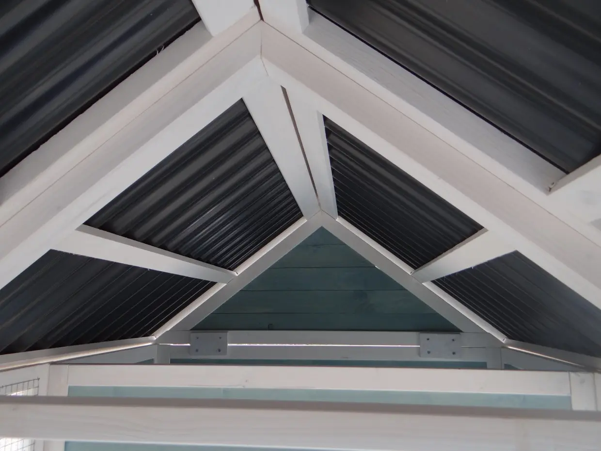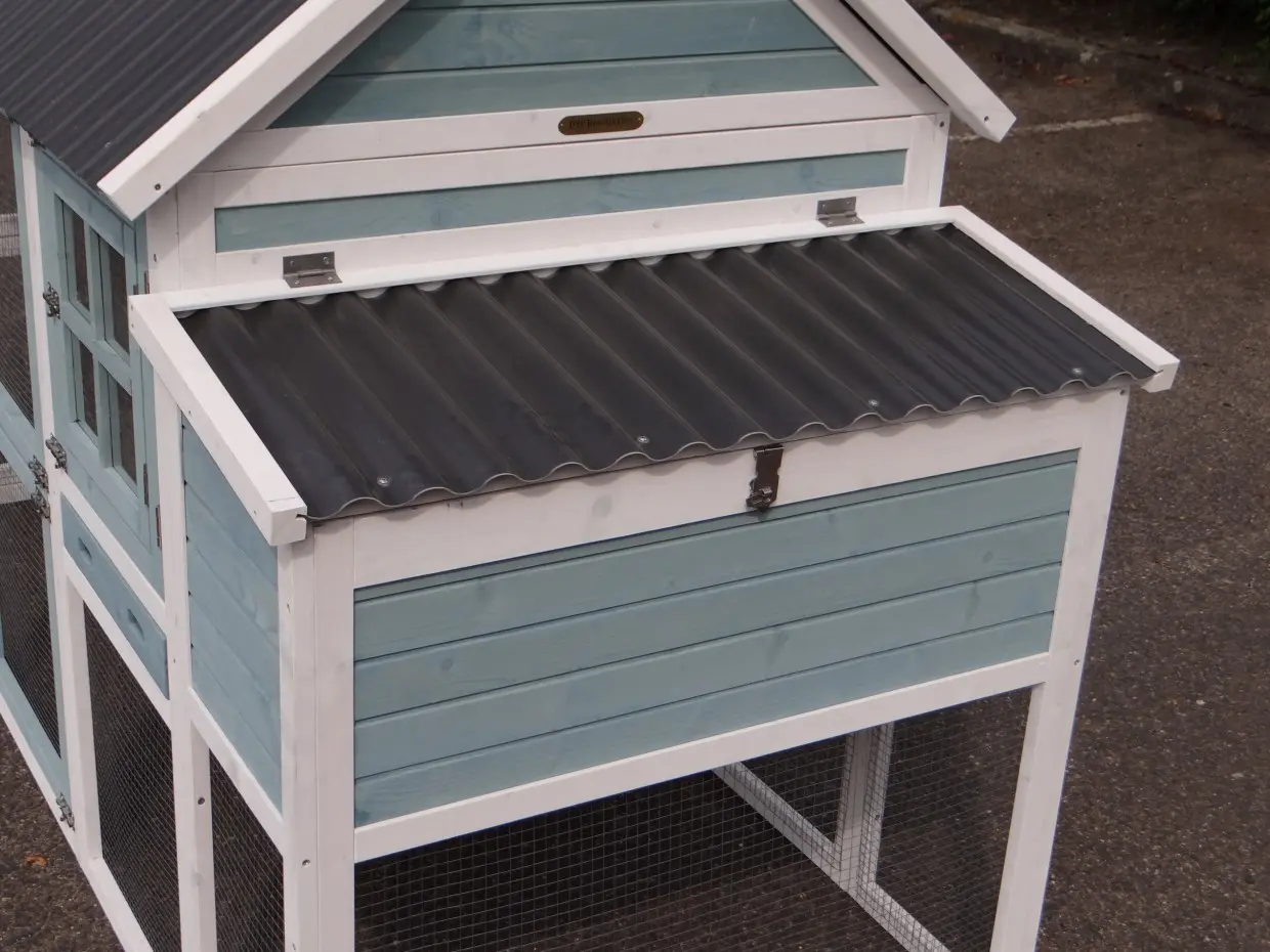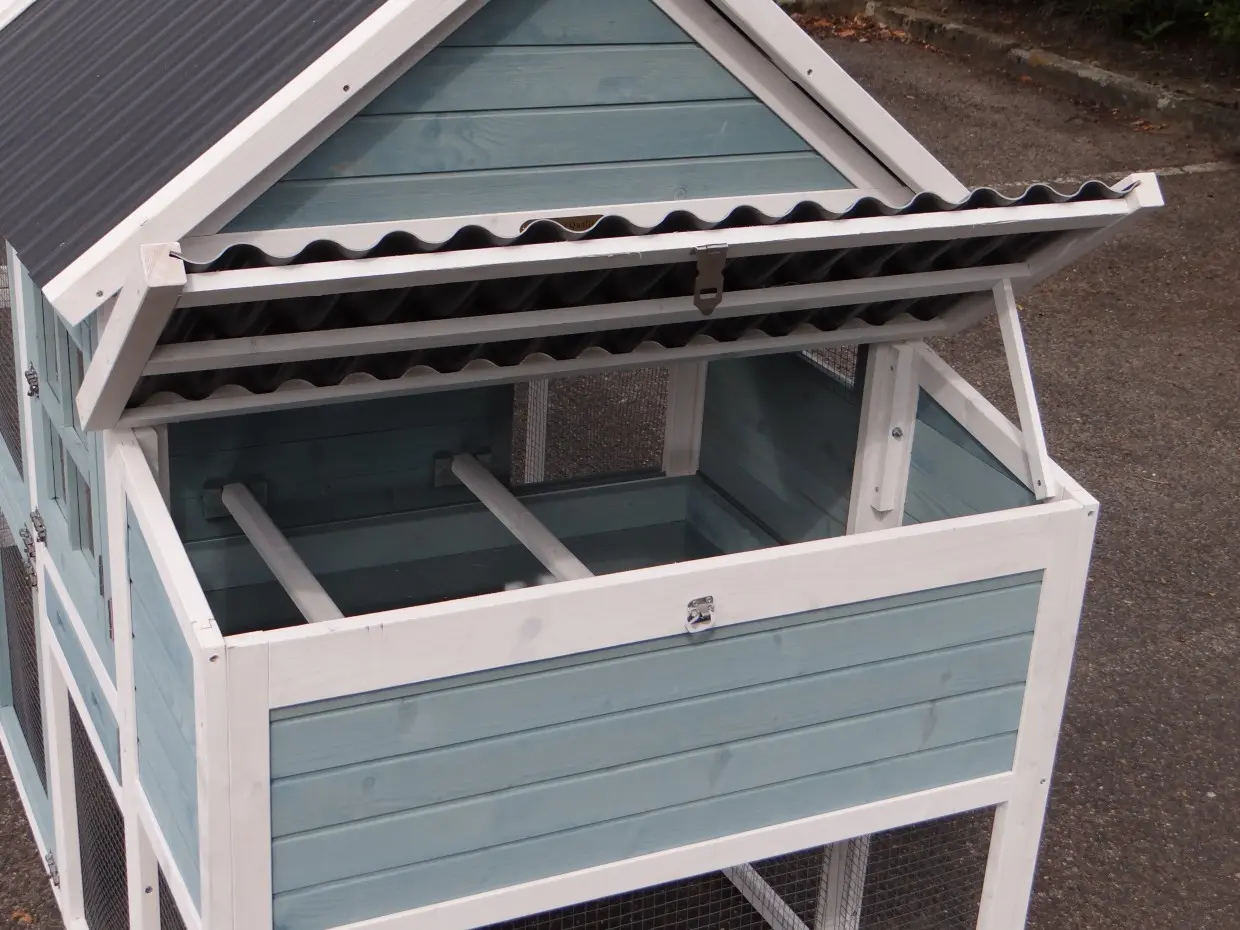 - The rabbit hutch has a plastic roof
